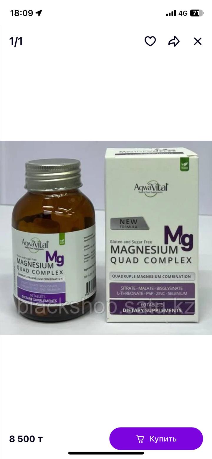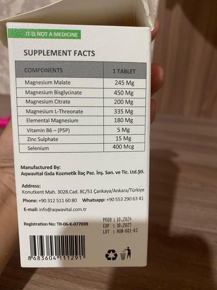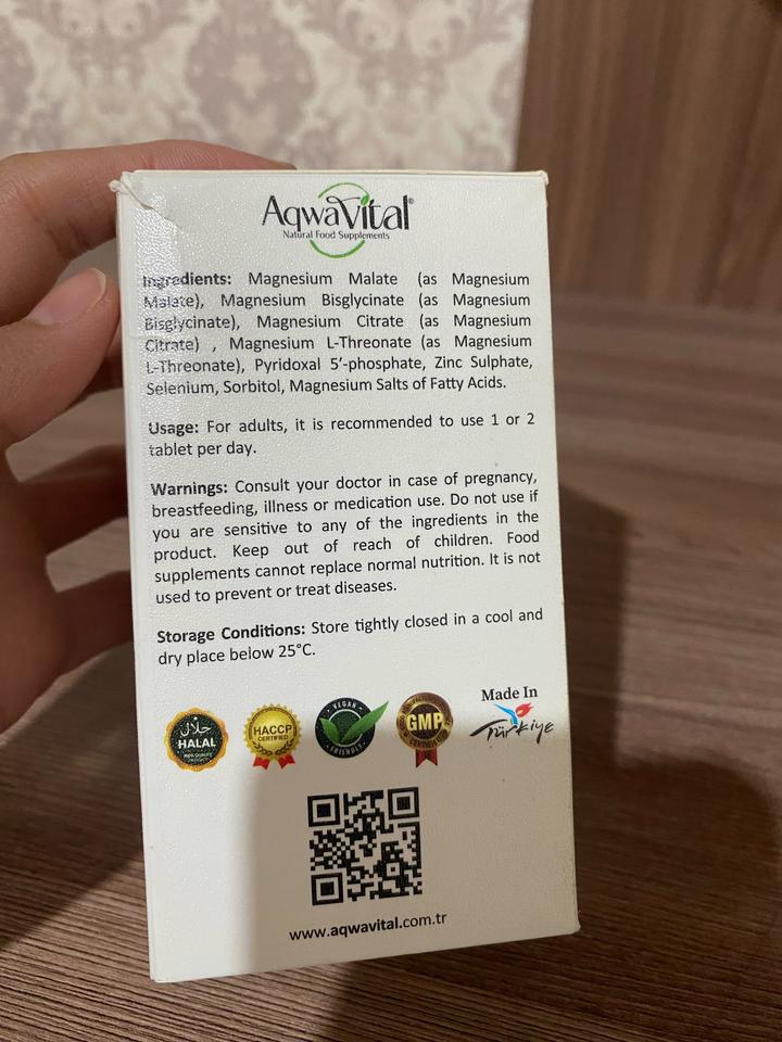 Турция Akwa vital Не вскрытый(коробка порвана) 60 таблеток 4 вида магния, В6, селен, цинк Срок до октября 2027 Артикул: 583596
