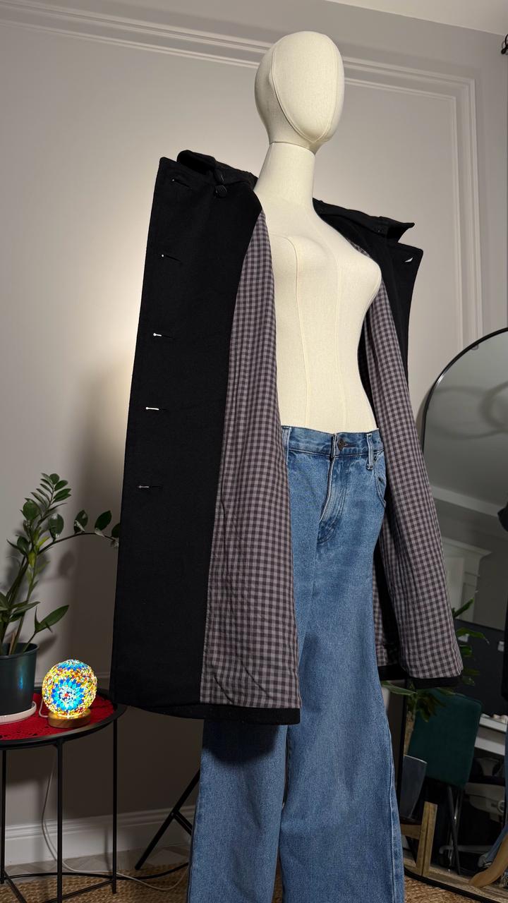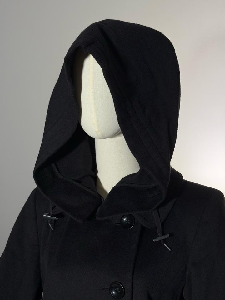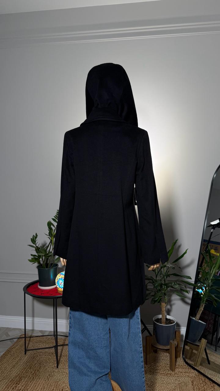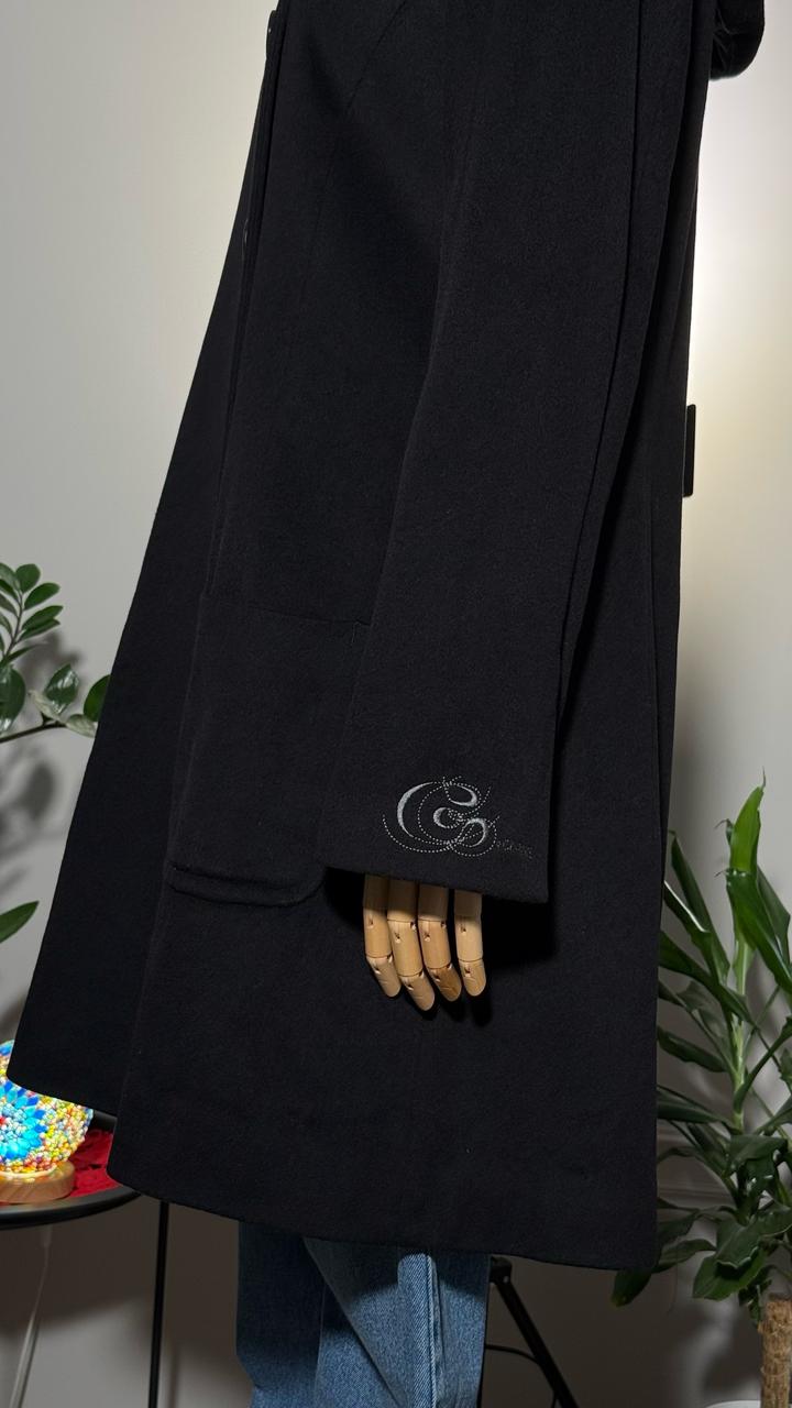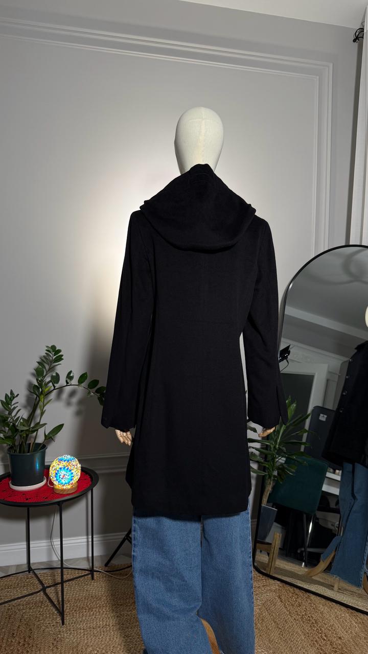 Размер: M-L (по бирке) Шикарное пальто с капюшоном из шерсти лана от французского бренда Cop.Copine 🖤 Модель Dray Manteau. Пальто однобортное, чёрного цвета, с большими пуговицами и брендовой серебристой вышивкой на левом рукаве. Силуэт прямой, слегка приталенный. Капюшон затягивается на шнурок и отстегивается, под ним классический воротник. Внутри красивая хлопковая подкладка. Артикул: 583675