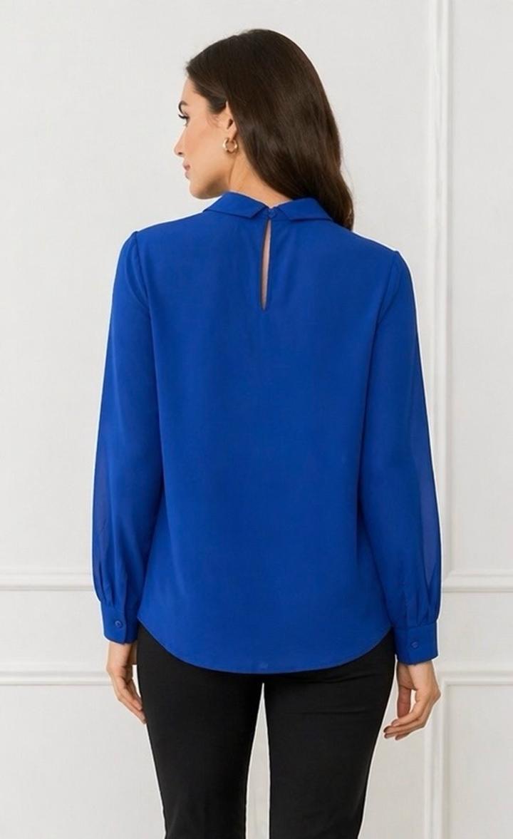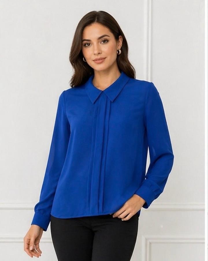 Элегантная блузка в насыщенном благородном синем цвете — выглядит дорого и стильно. Лёгкая, струящаяся ткань красиво ложится по фигуре • Аккуратный воротник и изящная складка спереди • Женственная посадка — подчёркивает силуэт Смотрится как дорогая дизайнерская блузка — Актуальна вне времени Артикул: 583712