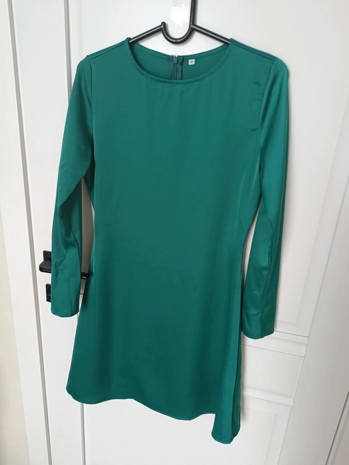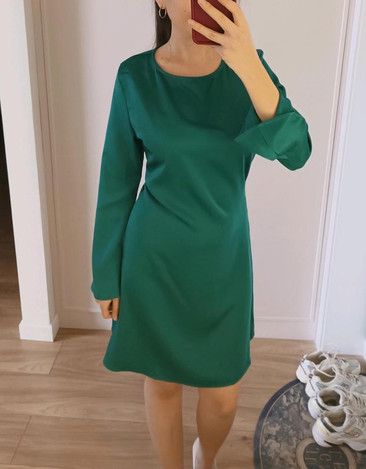 Размер М. Атласное платье Параметры ( на 3 фото) Застёгивается на молнию , рукава расклеенные. Материал: полиэстер/спандекс. Ткань шелковистая. Приятная на ощупь. Артикул: 583783