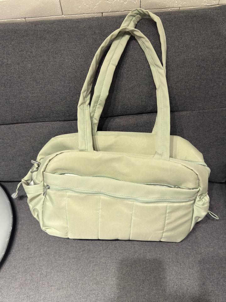 Идеальная сумка для спорта или путешествий. Цвет нежно зеленый Очень много отделений удобных Имеет ремешок для сумки Использовала всего один раз Артикул: 583824