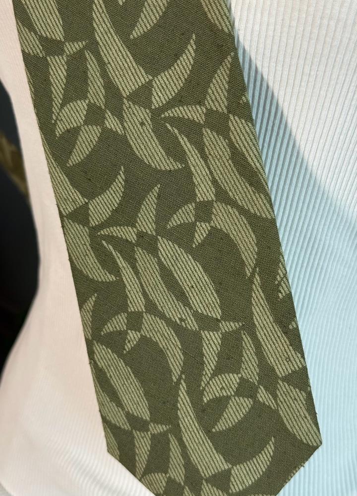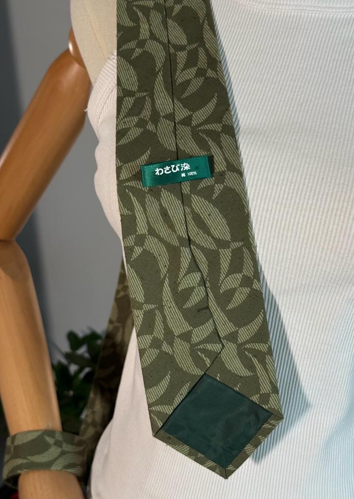 Стильный льняной галстук с узором в зелёных тонах, без дефектов. На бирке указано: わさび染 - «окрашивание васаби / васаби-крашение». Артикул: 583870