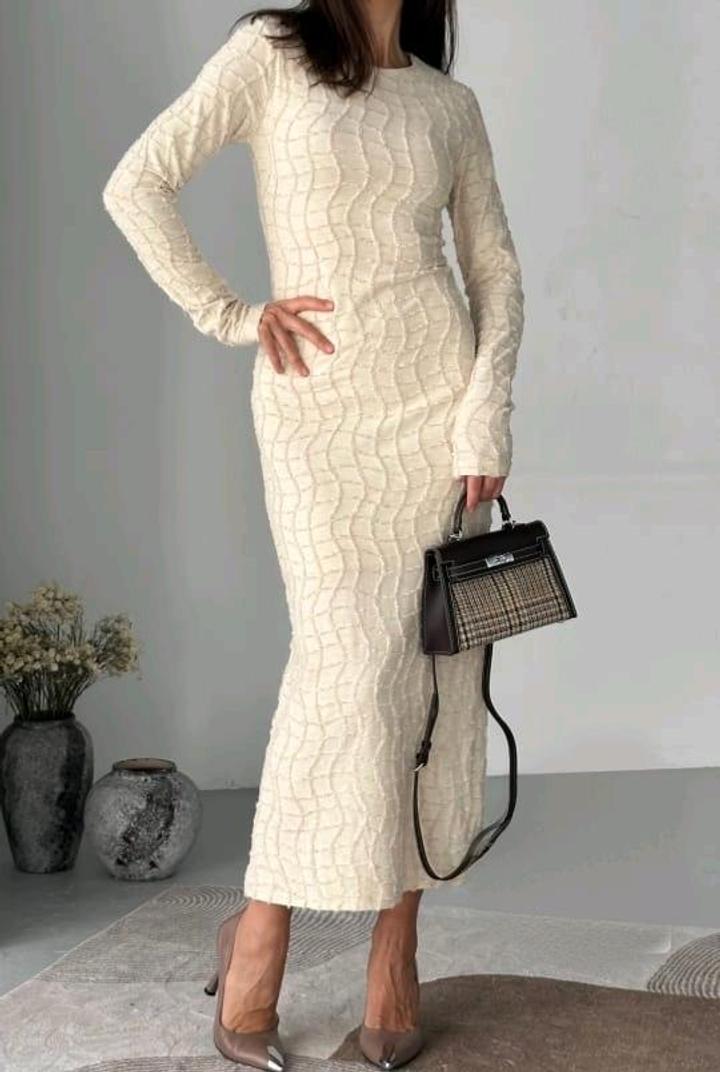 Молочное длинное платье Артикул: 583879