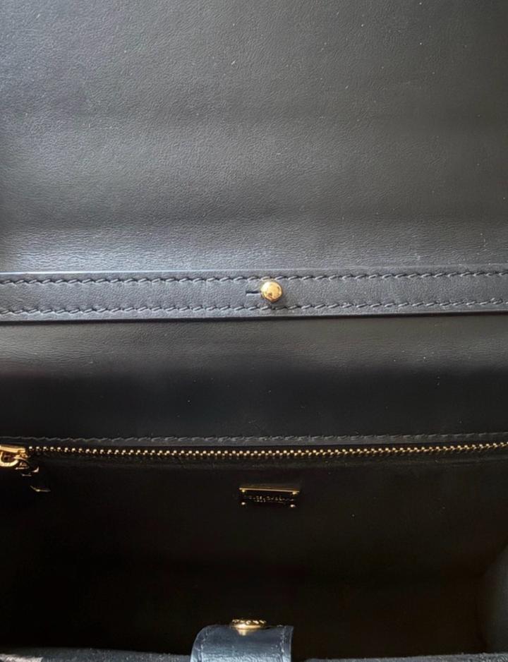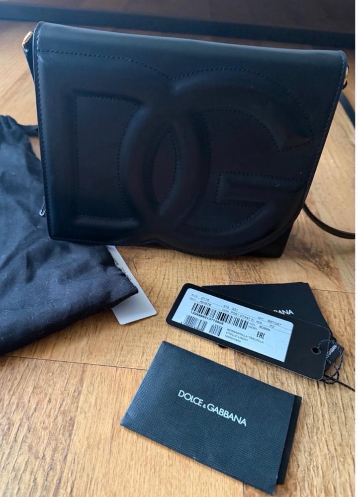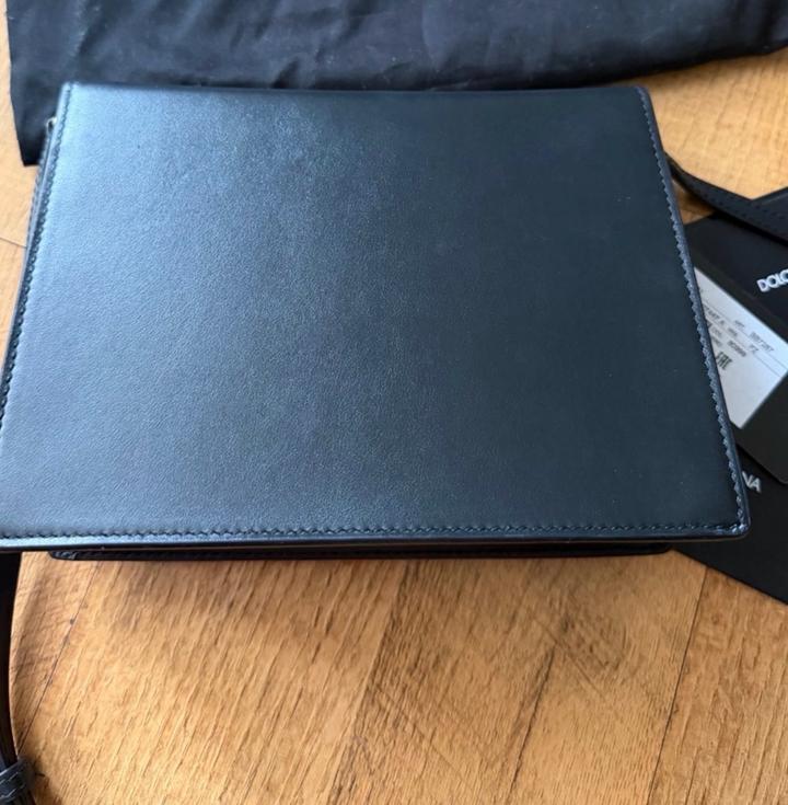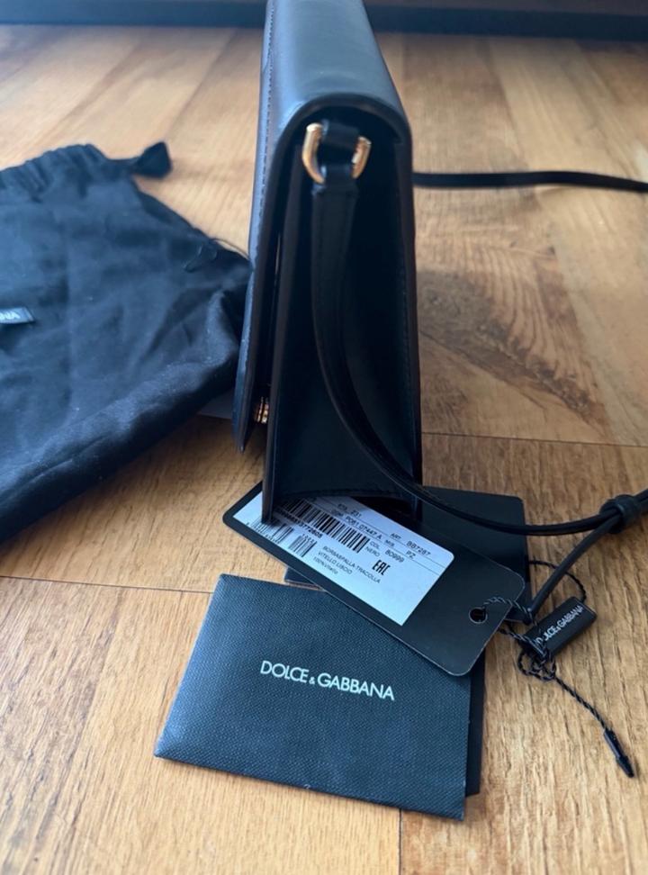 Модель выполнена из 100% телячьей кожи и дополнена стеганым логотипом DG с 3D-эффектом, а также регулируемым съемным плечевым ремнем. Застежка: Клапан с потайным магнитным замком. Внутренняя отделка: Подкладка из алькантары, карман на молнии и отделение с ремешком на кнопке. Размеры: 16 × 20 х 5,5 см. Страна производства: Италия. Есть небольшие потертости на застежка, кожа без царапин Артикул: 583936