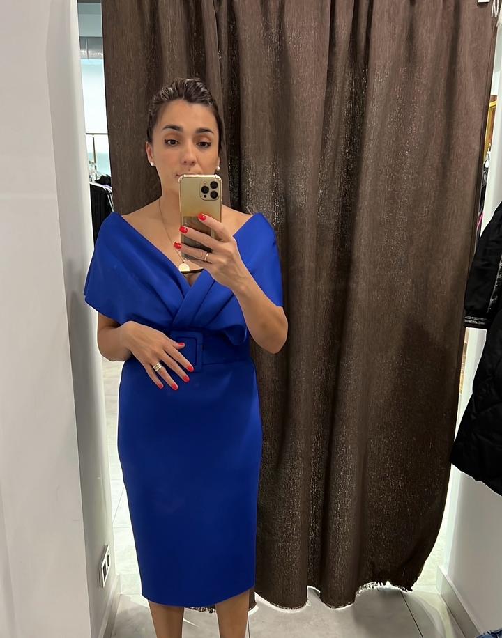 Платье покупалось в магазине Primasplosa. Ткань неопрен , идеальная посадка , платье очень элегантное , хорошо скрывает «излишки» и держит форму . Артикул: 584091