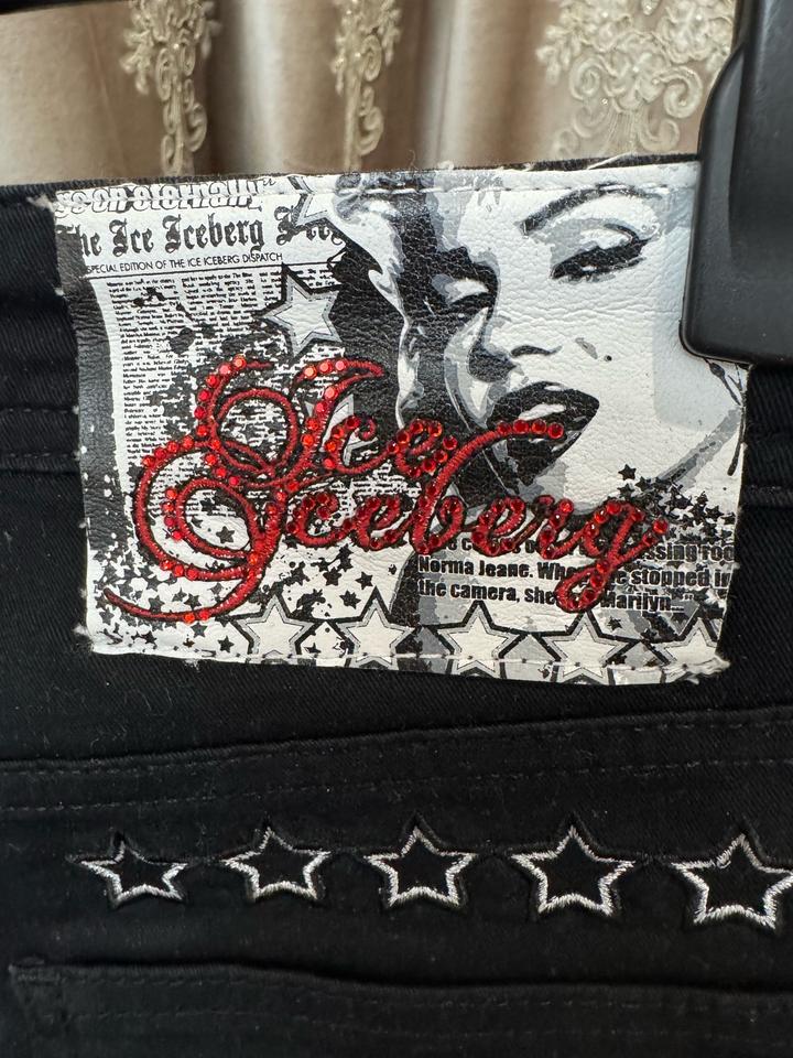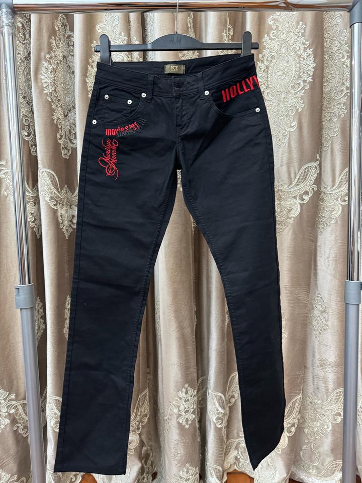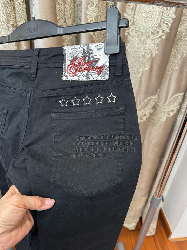 Четкие джинсы ICEBERG Таких нет в Казахстане)) Это джинсы произведение искусства Hollywood❤️ Средняя посадка размер 27 Размер s Артикул: 584119