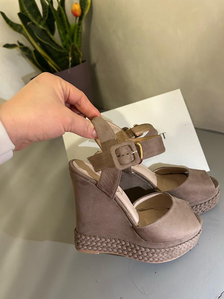 ✨ Стиль: изысканная классика с современным акцентом ✨ Материал: мягкая замша приятного бежево-таупового оттенка ✨ Удобная танкетка — визуально удлиняет ноги и комфортна в носке ✨ Фиксация на щиколотке с регулируемым ремешком ✨ Подходят как для повседневных образов, так и для особых случаев Состояние: отличное, носились аккуратно Производство: Турция Идеальны для лета — легко сочетаются с платьями, джинсами и юбками 🤍 Артикул: 584169