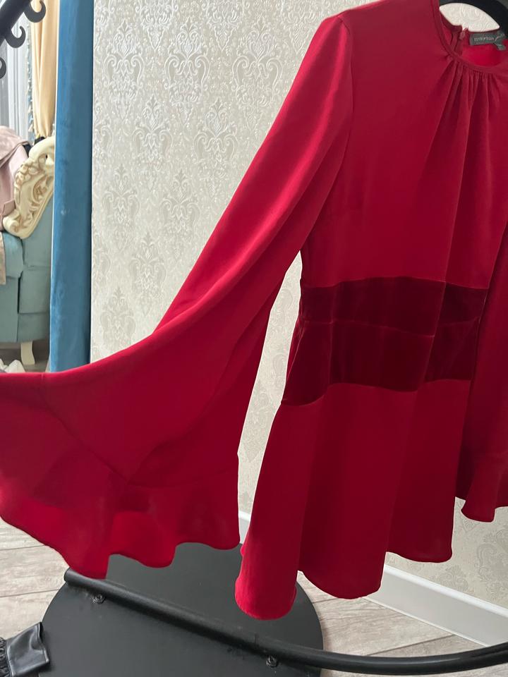 Очень красивое платье , интересного кроя , цвета Бордо , с бархатной вставкой на талии . Широкий рукав , обрамлённый рюшами . В таком платье , как говорят «И в Пир и в Мир» Артикул: 584176