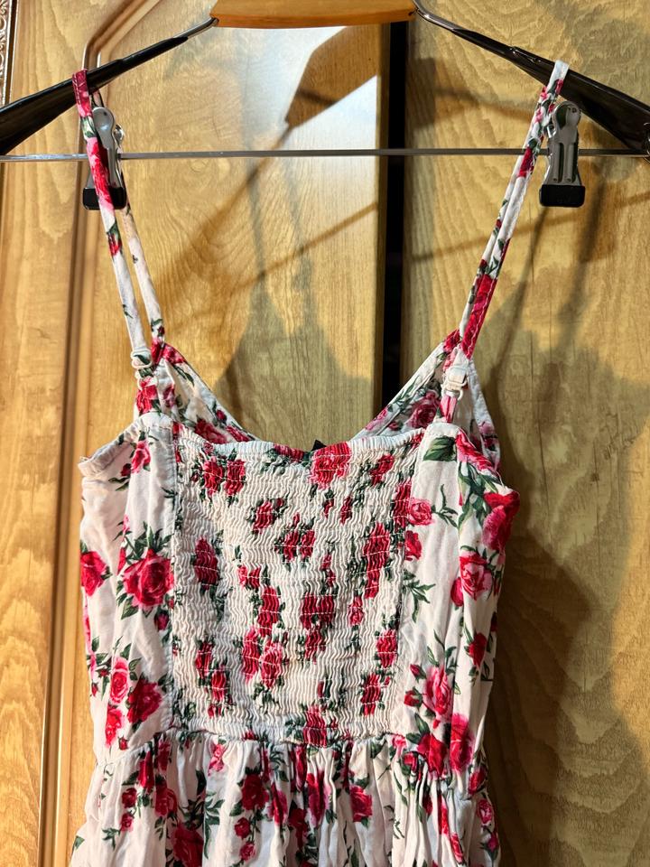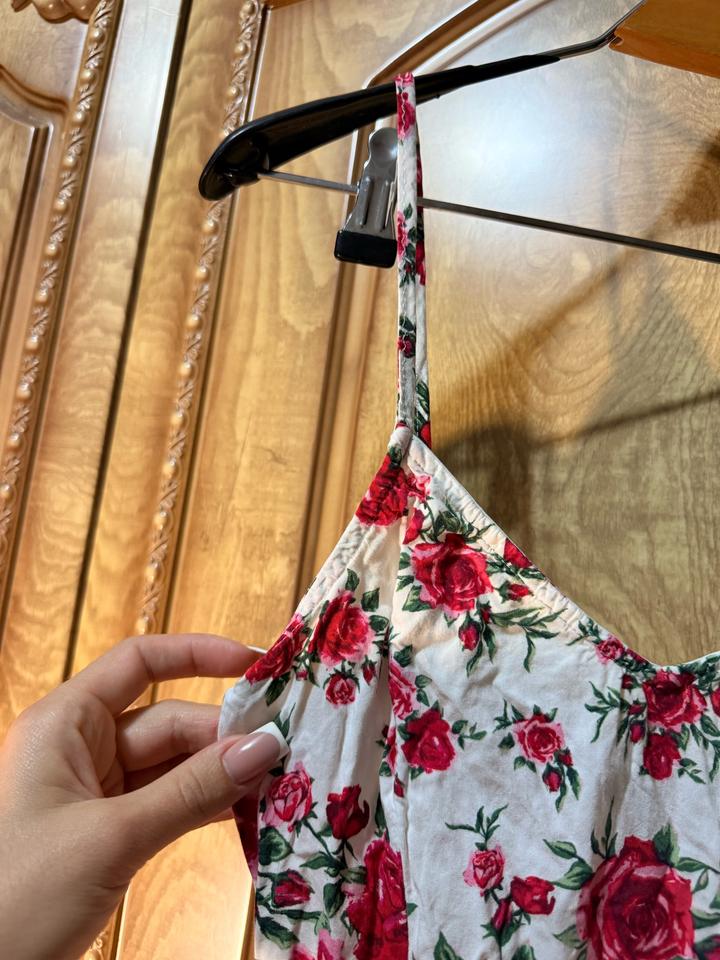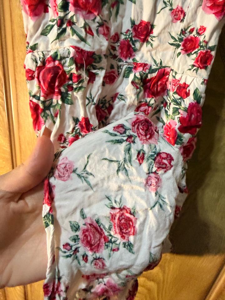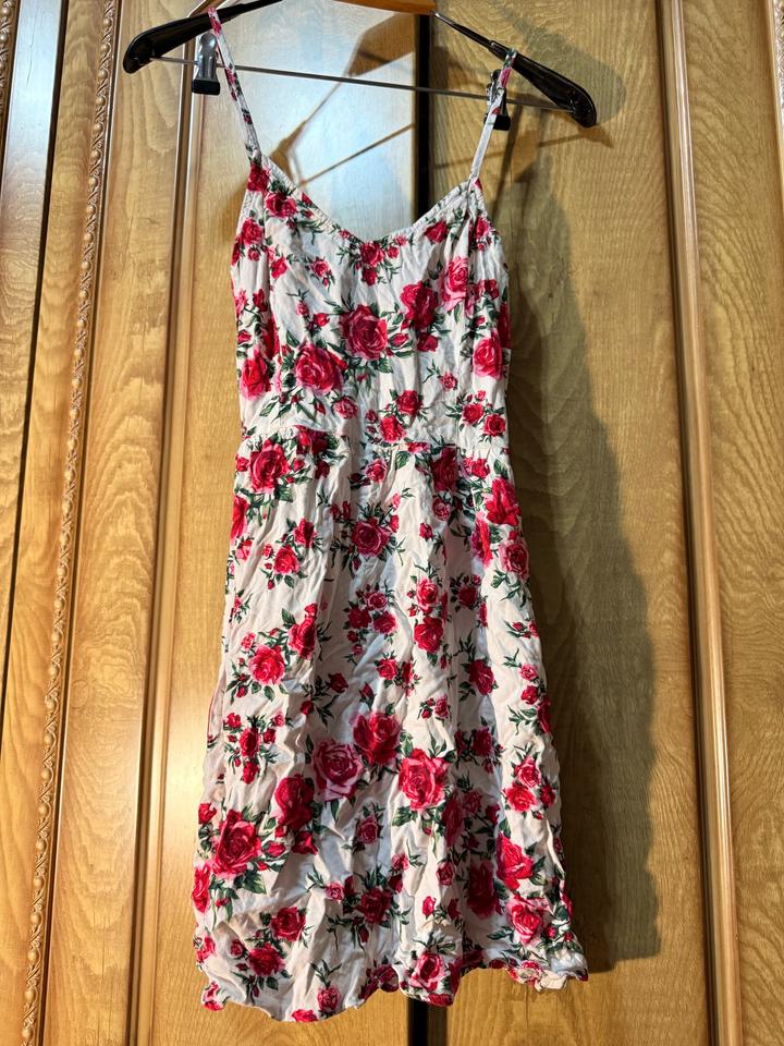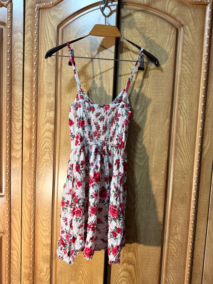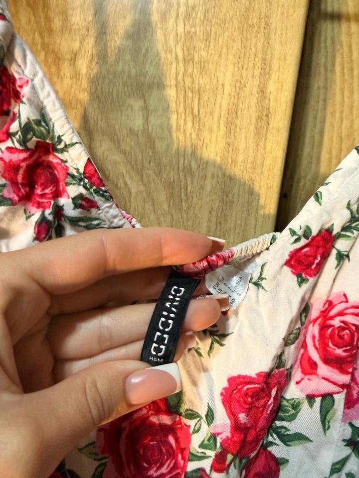 Лёгкое летнее платье H&M в нежном кремовом оттенке с яркими розами 🌹S