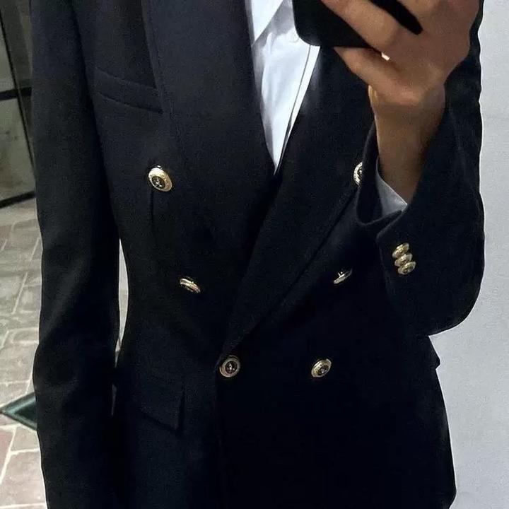 Черный пиджак Зара с золотистыми пуговицами, после химчистке, носился очень аккуратно Артикул: 584189