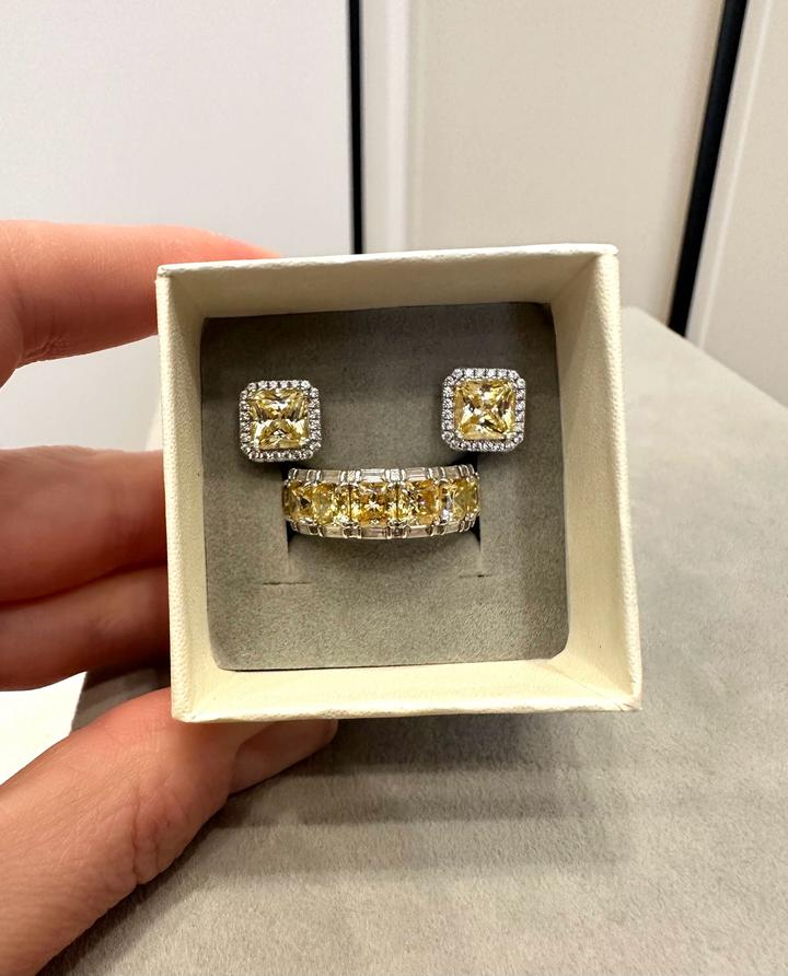 Набор из кольца и сережек серебро 925 пробы и камни карбоны размер кольца 17,5 Покупала в бутике ala jewelry Артикул: 584197