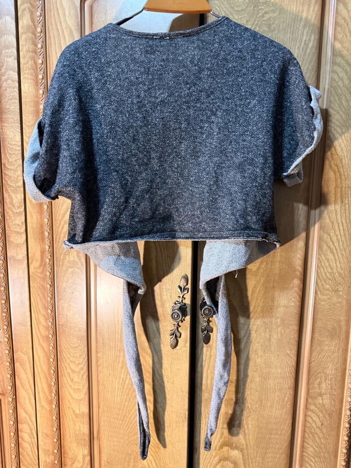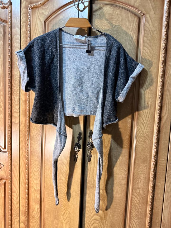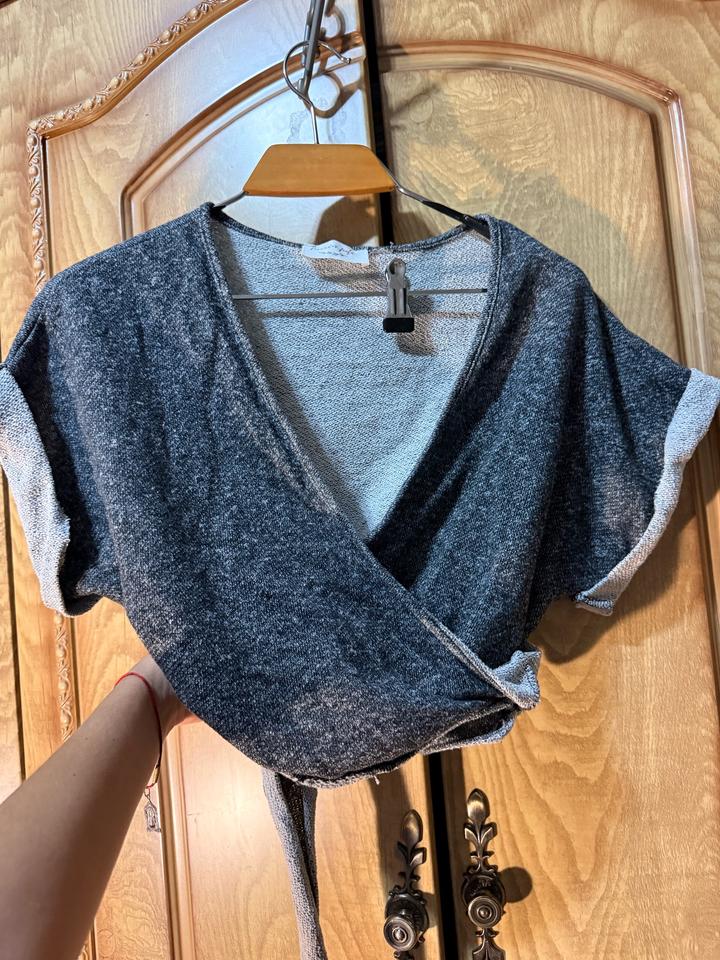 — необычный крой (укороченный спереди, удлинённые элементы) — можно завязывать разными способами — мягкий трикотаж — цвет: серый меланж — рукава с подворотом — подчёркивает талию Смотрится как дизайнерская вещь, не масс-маркет. Можно носить: — поверх топа/бра — с джинсами с высокой посадкой — как акцент в образе Очень классно для Instagram-образов и стилизаций. Артикул: 584224