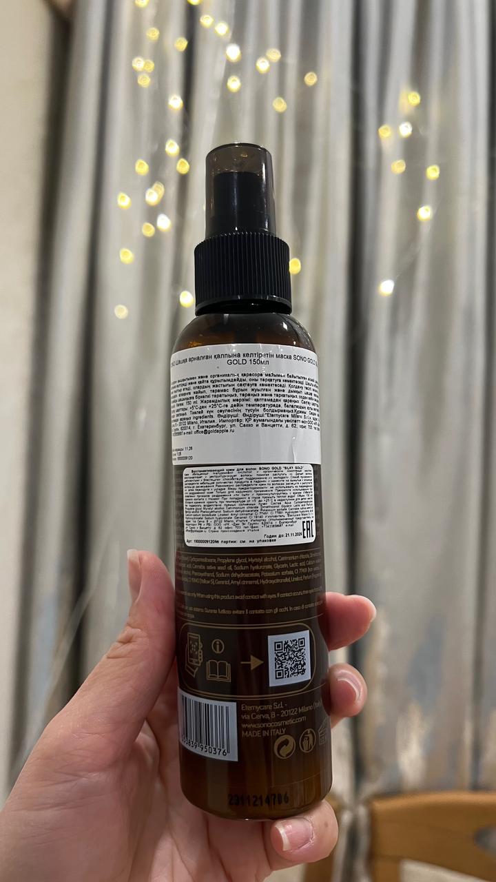 ВОССТАНАВЛИВАЮЩИЙ КРЕМ ДЛЯ ВОЛОС SONO SILKY GOLD. Использовано совсем немного. Брала в зя за 24к Артикул: 584273