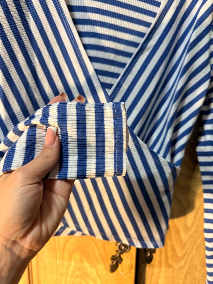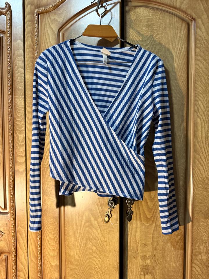 Стильная кофта в актуальную полоску с эффектом запаха, которая красиво подчёркивает фигуру и зону декольте. За счёт кроя визуально делает талию уже и создаёт аккуратный силуэт. Ткань мягкая, эластичная, приятная к телу. Универсальная вещь: легко сочетать с джинсами, юбками и классическими брюками. Смотрится свежо, аккуратно и дороже своей цены. Артикул: 584314