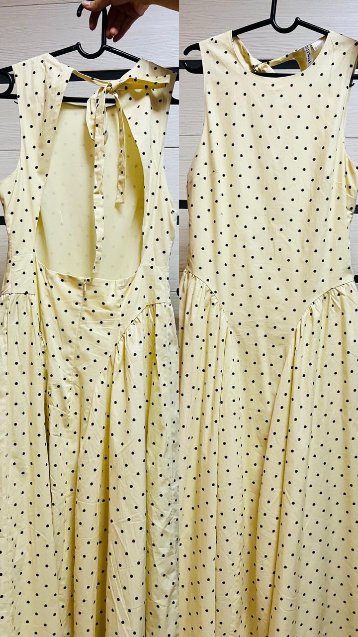 Желтое платье в горошек,новая.Думала сзади закрыто.А так минусов нет,день назад купила Артикул: 584350