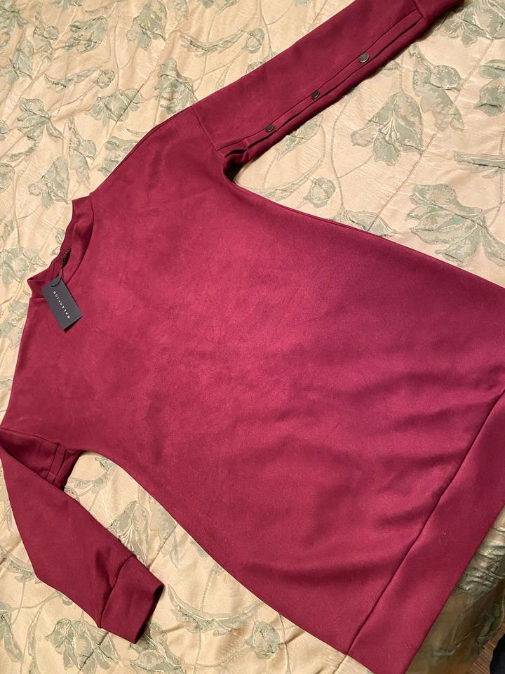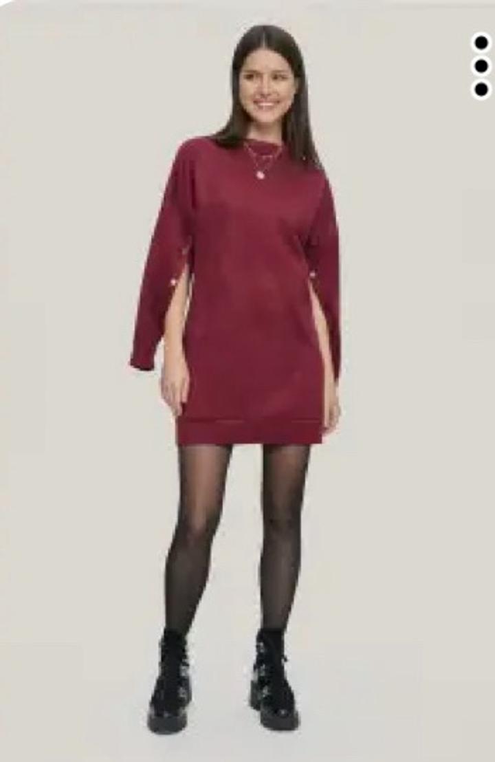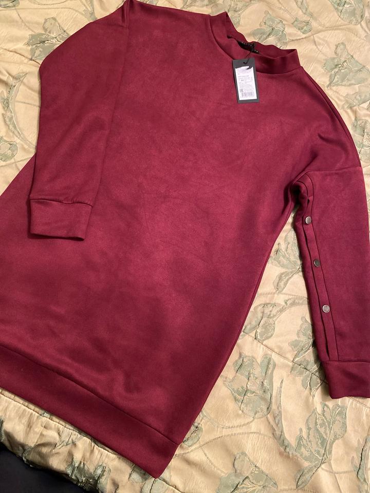 Платье-туника, эффект замши, универсальная модель, можно как платье, можно как удлиненный свитер , для разных образов. На 42-44. На рукавах заклепки рабочие. Артикул: 584355
