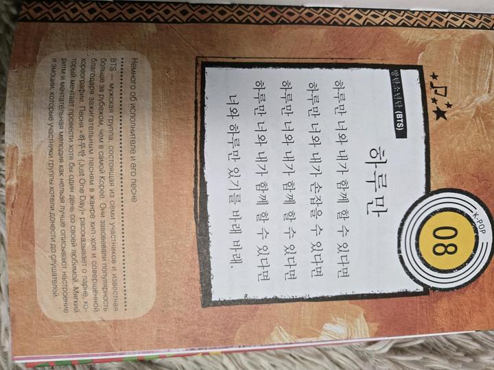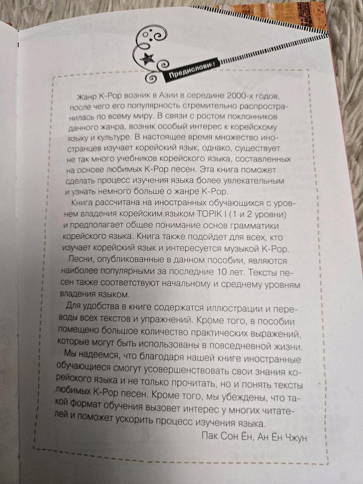 Это книга для тех,кто интересуется k pop. Она включает в себя не только переводы песен,но и помогает учить корейский язык На некоторых темах записано ручкой,поэтому цена занижена,в Маврвине стоит дороже В целом книга в отличном состоянии Артикул: 584371