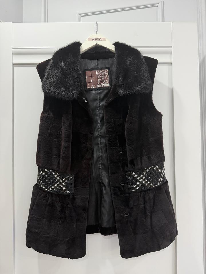 Норковая жилетка/безрукавка из премиального качественного меха Saga furs. Бренд Carnelli Italy. Размер S. Оттенок благородный шоколадный. Артикул: 584376