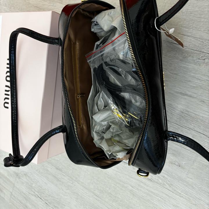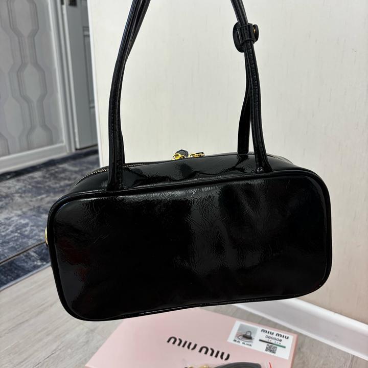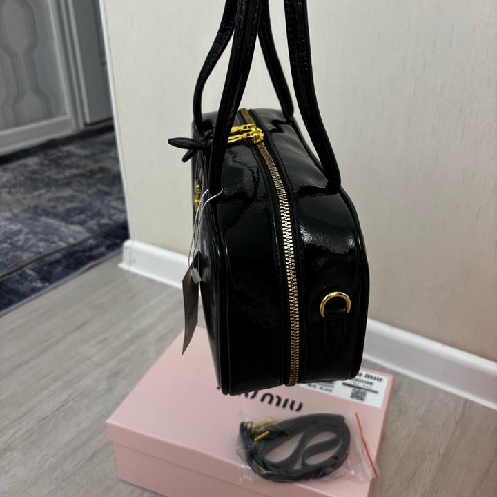 Лаковый қара жеңіл бочонок сумка. Ішінде ұзын ремешогы бар, кез келген киіммен үйлеседі коробка, пыльник, документі бар Артикул: 584393