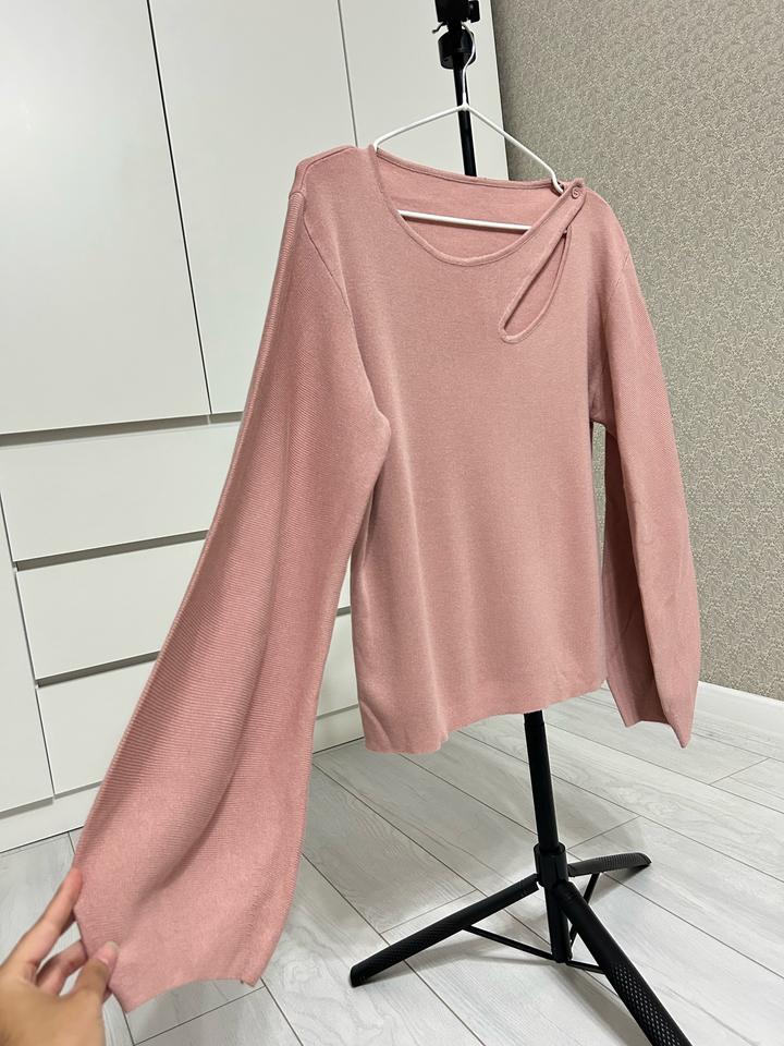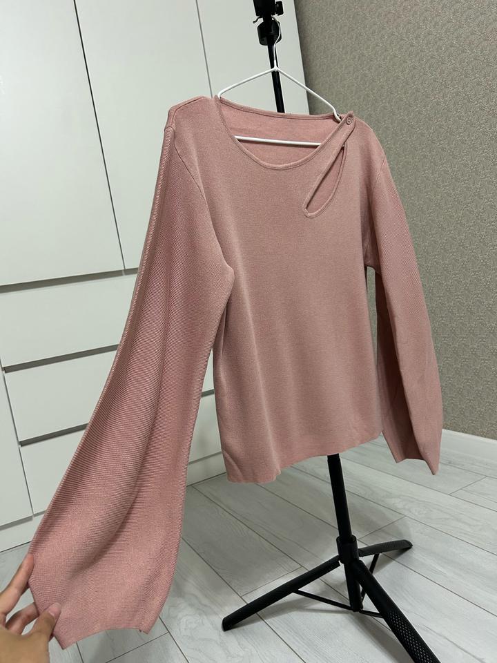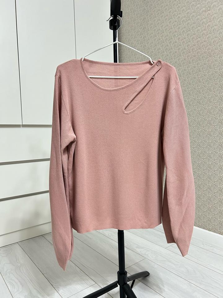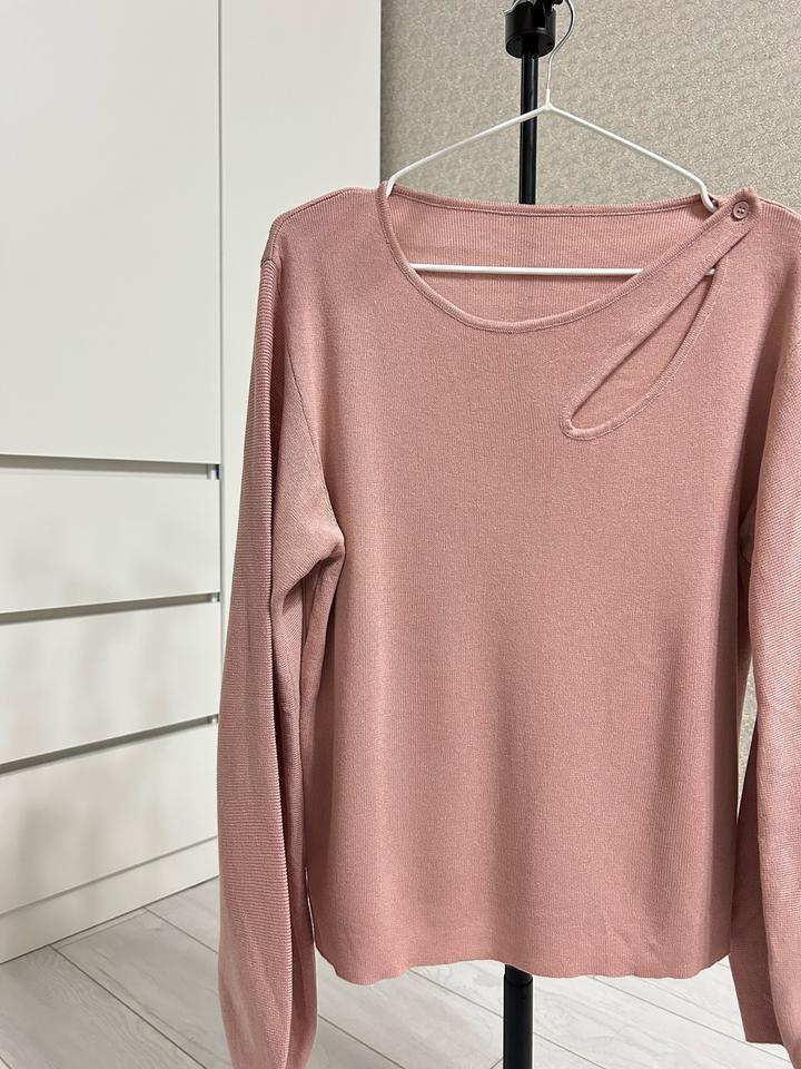 Розовый джемпер из трикотажной вязки, облегченный, ни разу не надевали. Ткань тянется до 48 размера, рукава округленные. Артикул: 584487