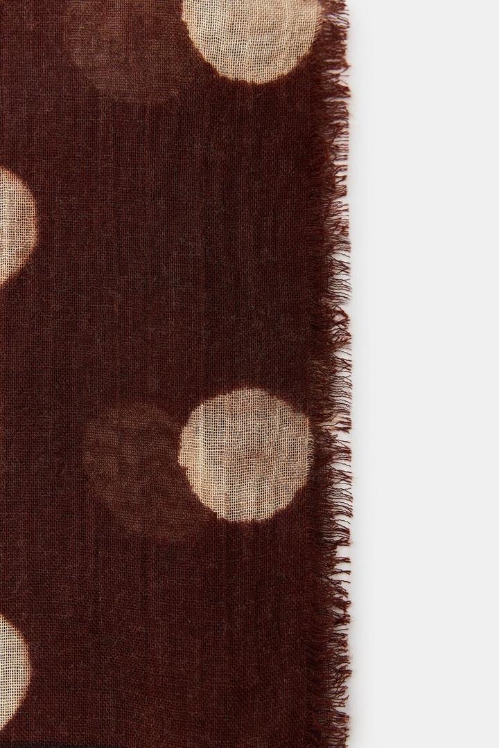 Шарф из смесовой пряжи, 9% шерсти. Принт в горошек. Необработанные кромки Артикул: 584511