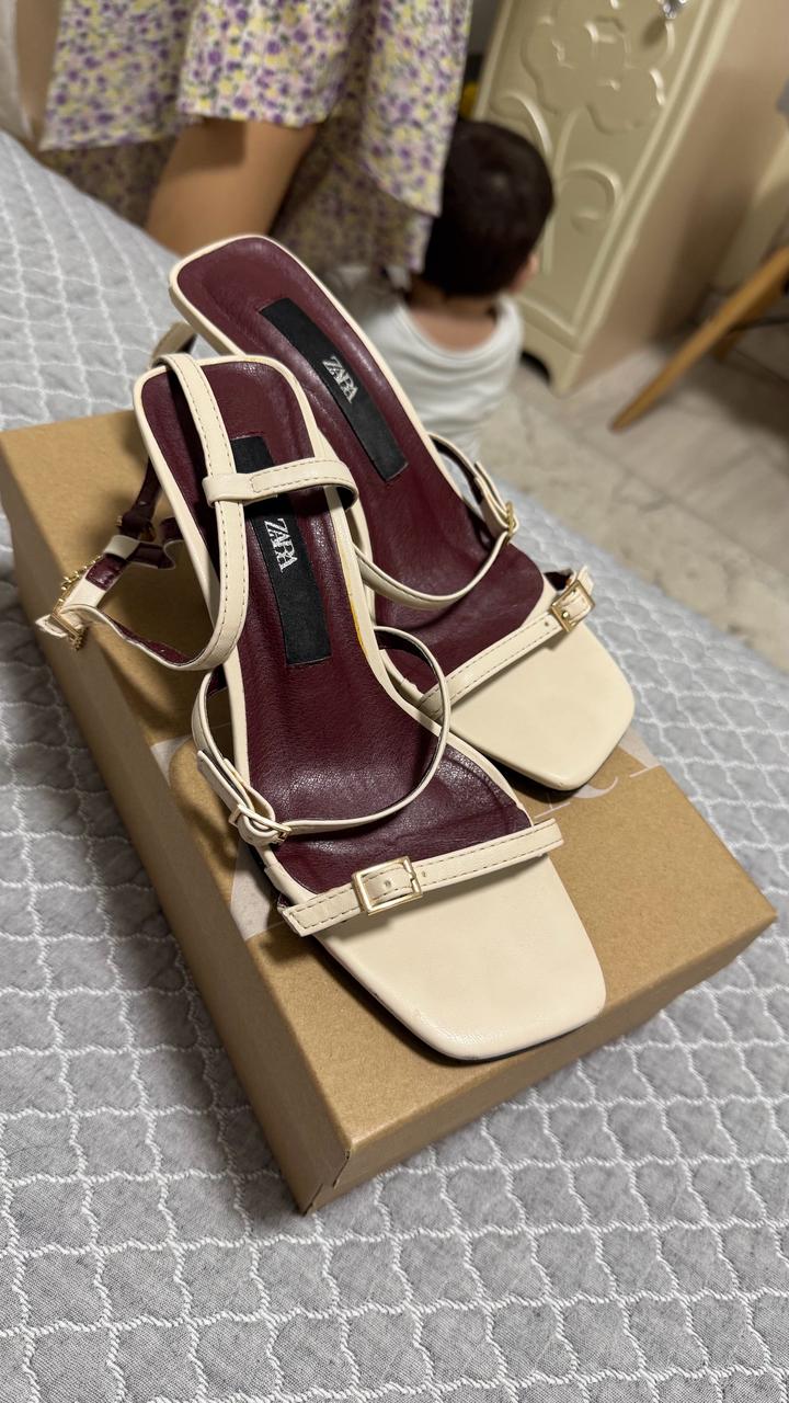 Бежевого цвета.Носила лишь раз.35 размер.зара Артикул: 584524
