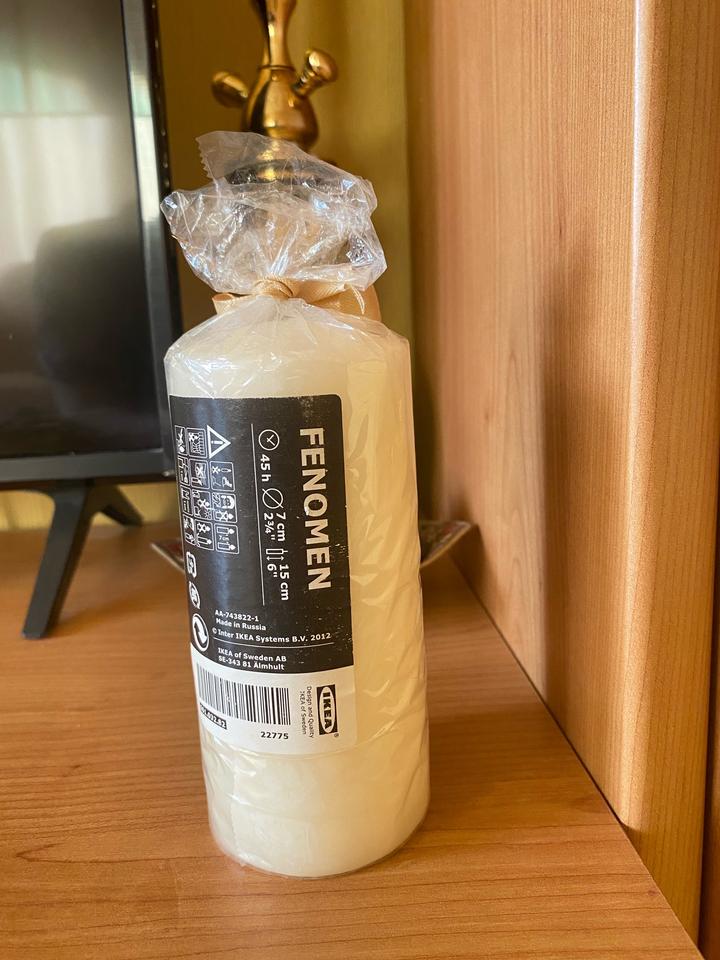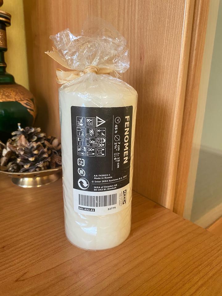 цилиндрическая свеча IKEA FENOMEN. Высота 15 см, диаметр 7 см Неароматическая Артикул: 584601