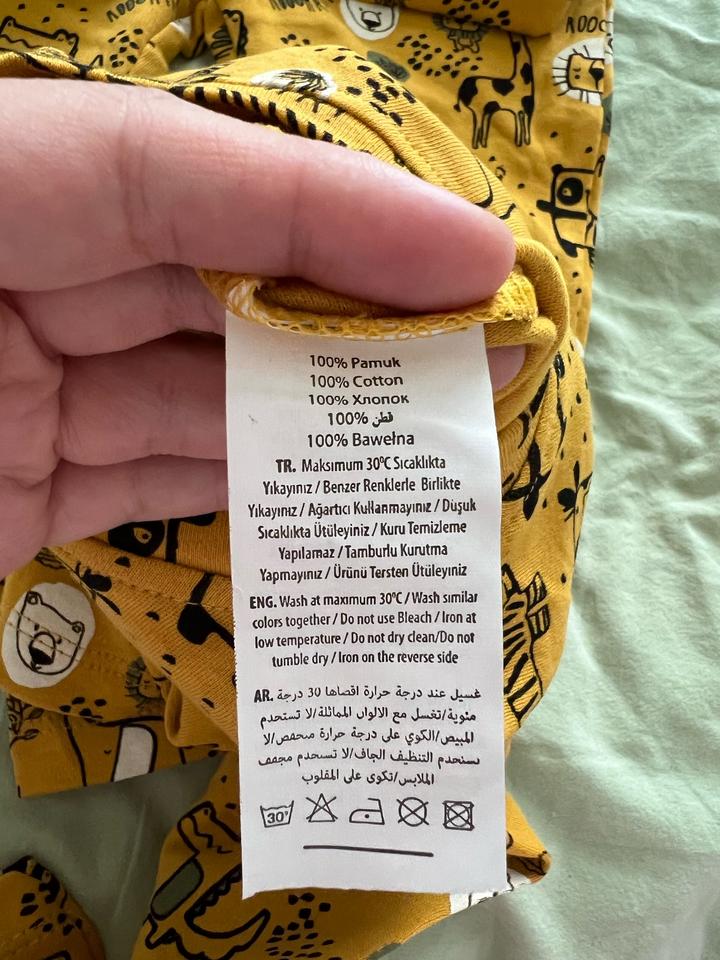 Очень милый, хорошенький костюмчик Горчичного цвета, на не пухлого ребенка (если так можно сказать), мой 9кг и ему в обтяжку 😅 На 6-9 мес Есть эластан в составе думаю, так как тянется Брали в Турции Артикул: 584615