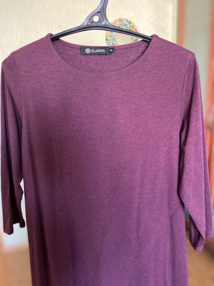 Трикотажная туника, выполнена из мягкой ткани. Прекрасно дополнит Ваш повседневный образ. Можно носить как отдельно, так и с джинсами, шортами, лосинами. Рукав 3/4. В носке 1 раз. Цвет: бордово-сливовый. Артикул: 584627
