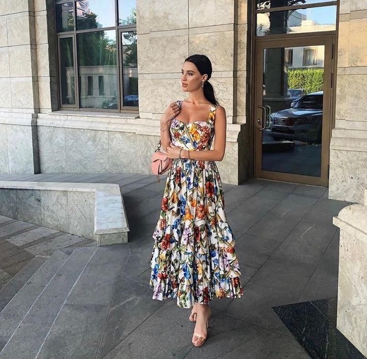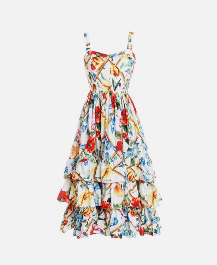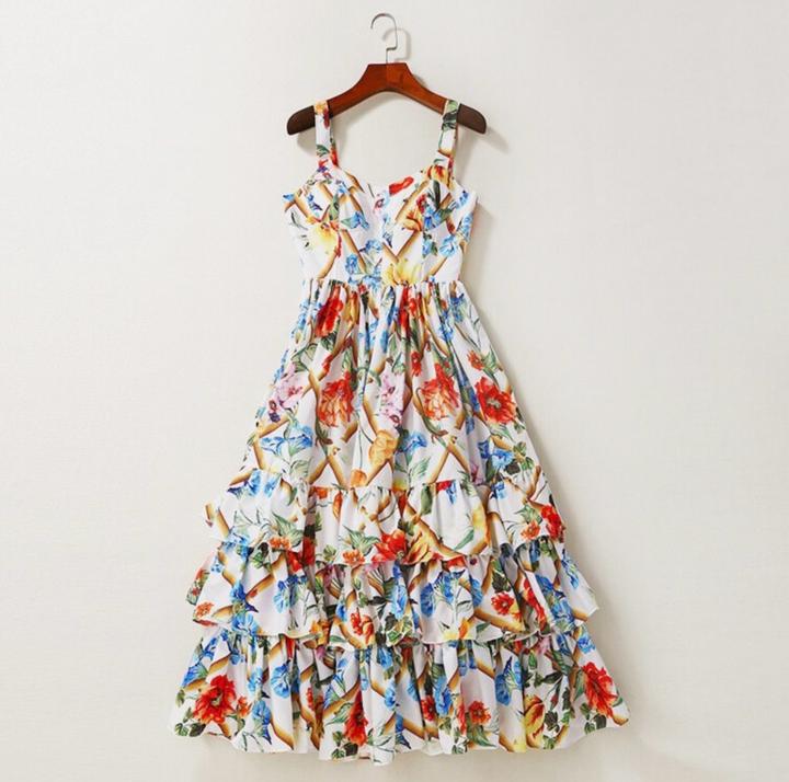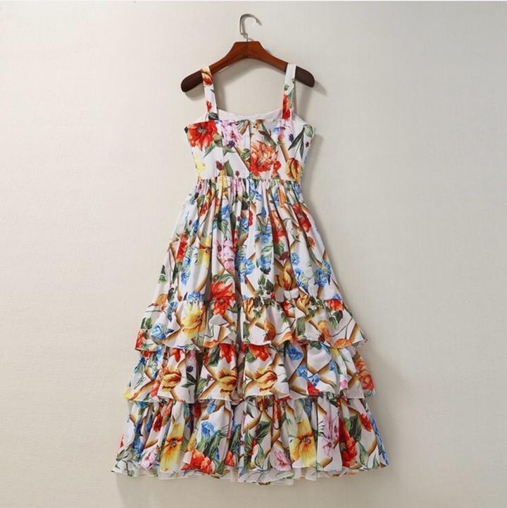 Трапециевидное платье многослойная юбка-торт бальное платье женское с цветочным принтом Артикул: 585819