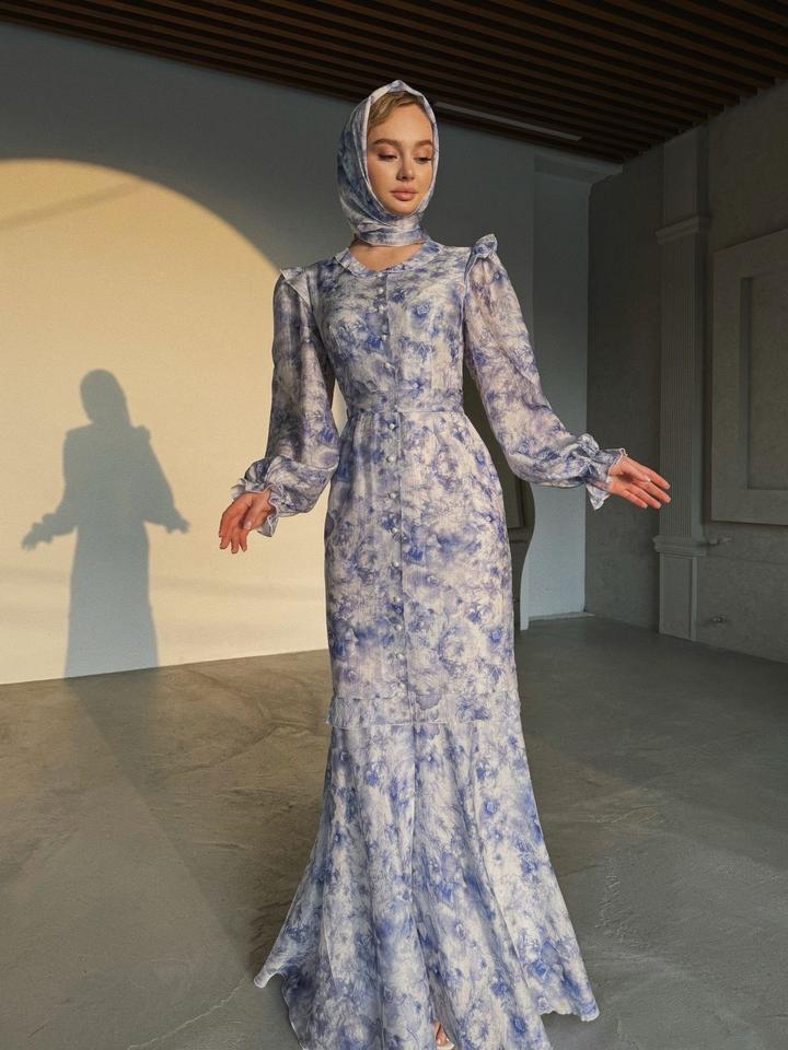 Нежнейшее платье с цветочным принтом идеально подчеркнет вашу фигуру🦋 Новое платье, продается в связи с закрытием магазина, размеры S и М! Платок и ремешок идут в комплекте к платью! Артикул: 585966