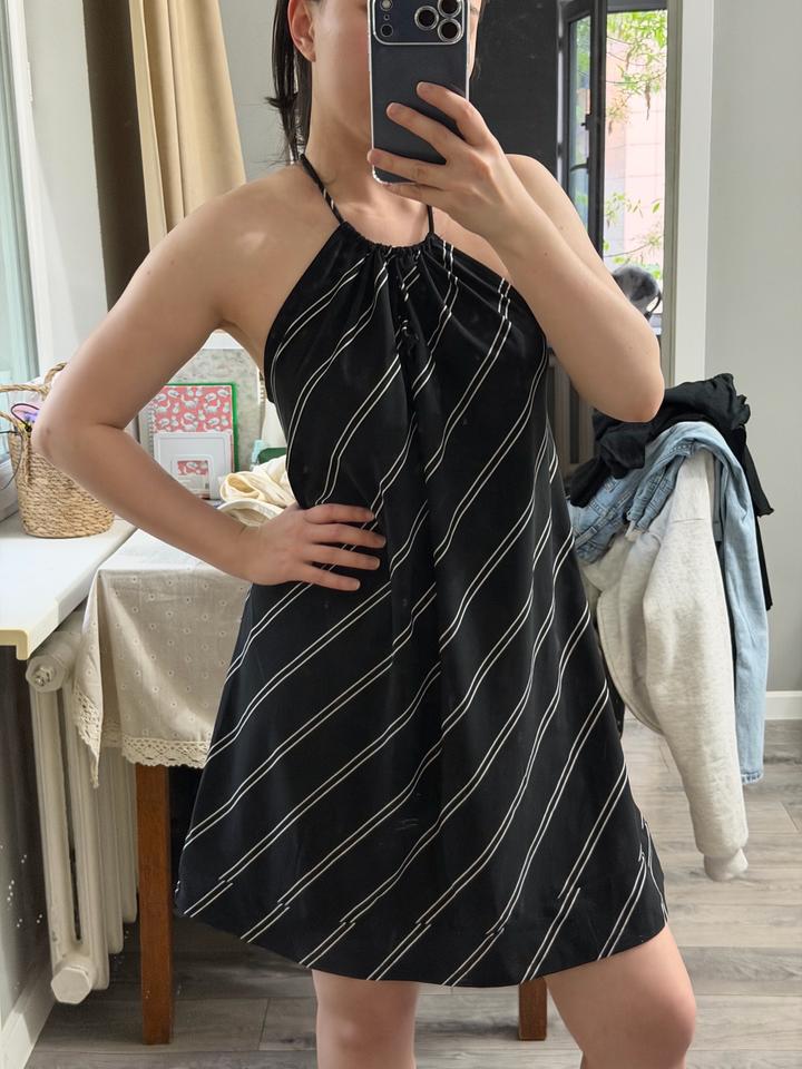 Свободное платье, подойдет как для xs, так и для М, за счет фасона, материал приятный, бирки нет, убрала так как терло сзади спину Артикул: 586002
