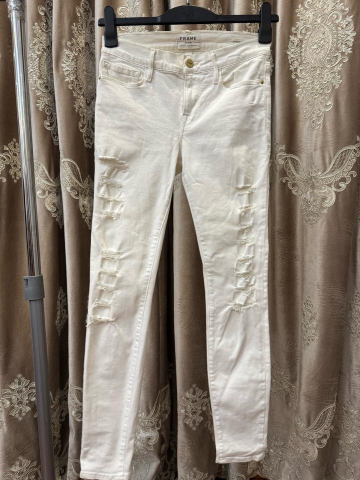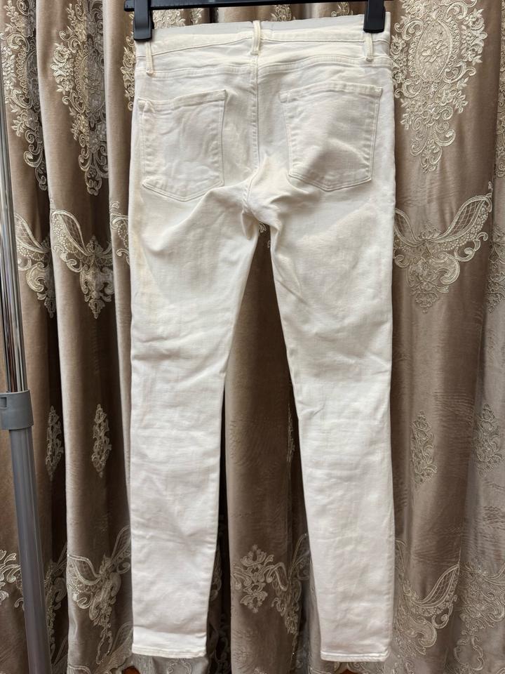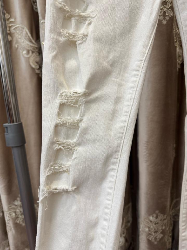 Продам белые джинсы очень хорошо тянутся Покупала в есентае Можно в химчистку Выход раз В основном провисели в шкафу Артикул: 586008