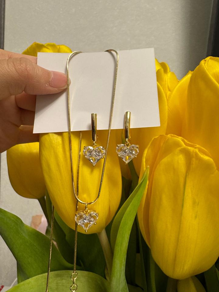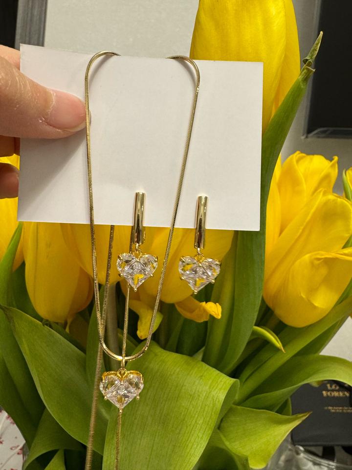 Серьги, колье из люкс фурнитуры. 1в1 в позолото, имеется 925 проба. Артикул: 586099