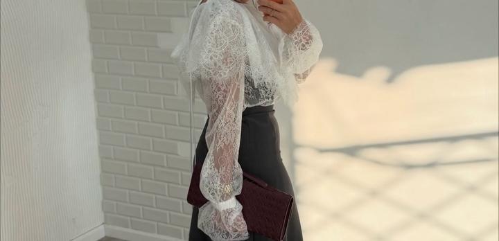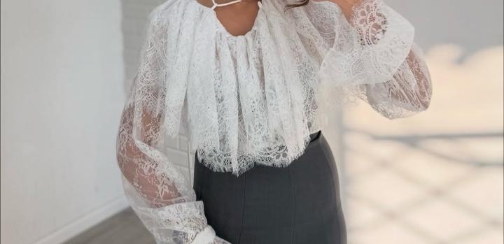 Белая кружевная блузка из гипюра — идеальный выбор для создания романтичного или вечернего образа. Подобные модели отличаются воздушностью, объемными рукавами и изысканными деталями из кружева. Артикул: 586140