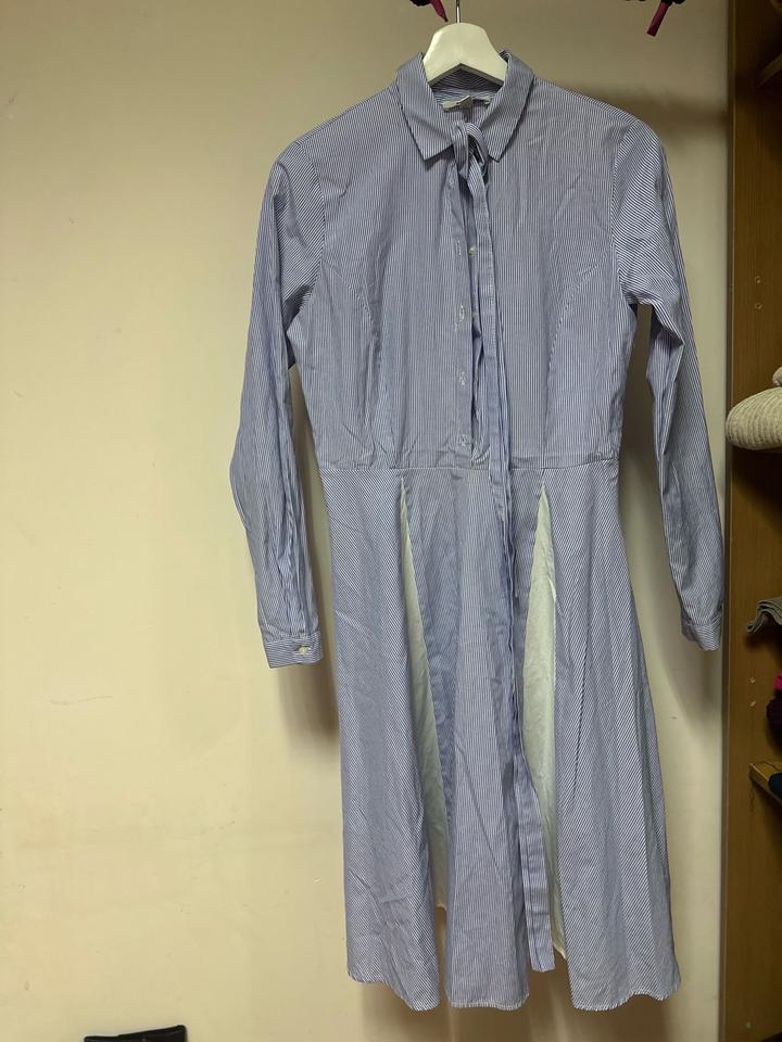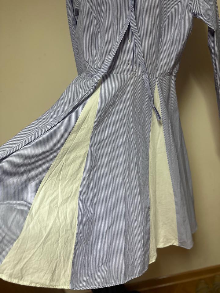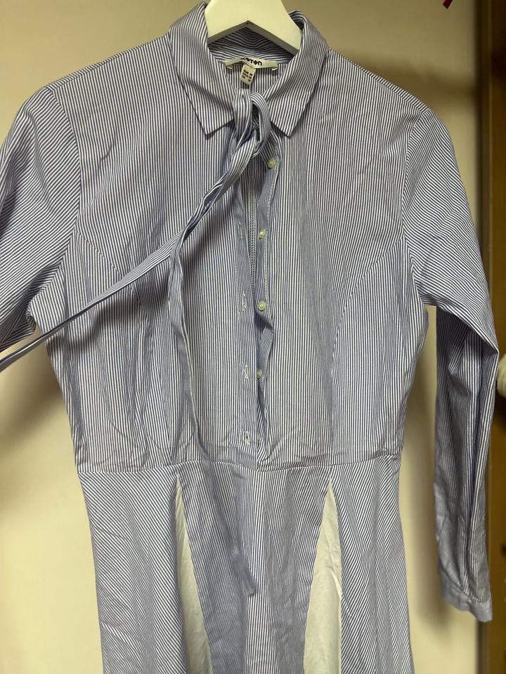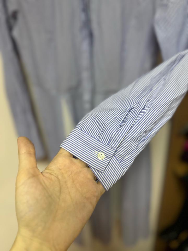 Восхитительное платье-рубашка в тонкую полоску — свежо, женственно и очень стильно. Клёвый акцент на талии и расклешённая юбка создают идеальный силуэт. Лёгкое, игривое и такое «дорогое» на вид — хочется носить каждый день 💙 В комплекте почсок: можно носить на талии или как галстук Артикул: 586149