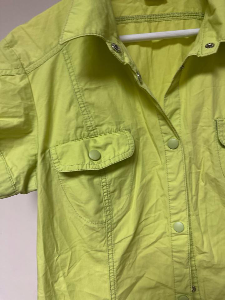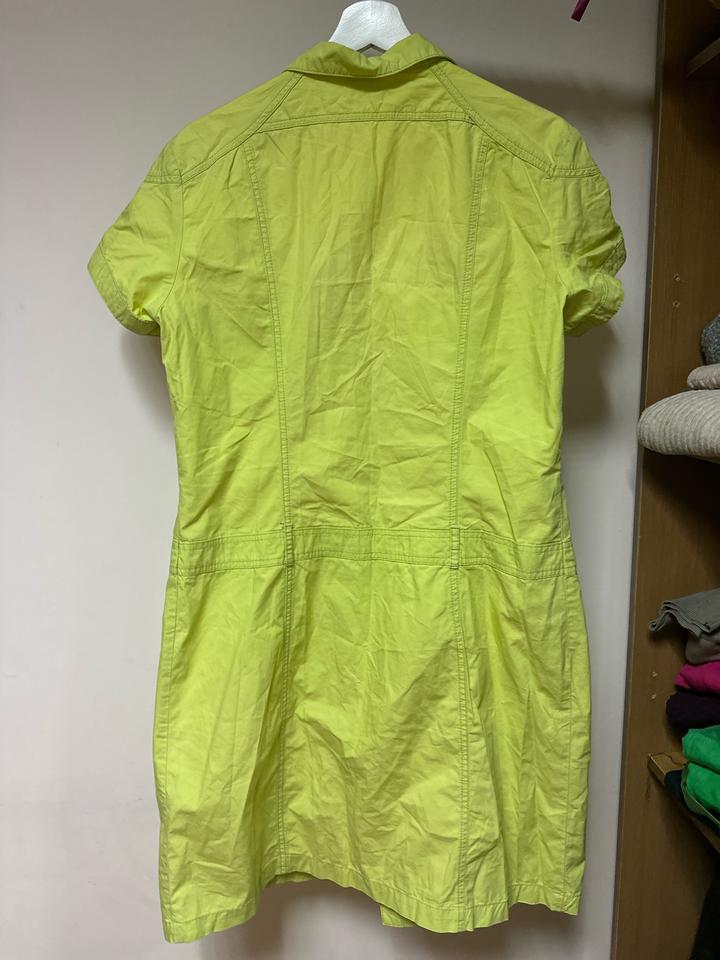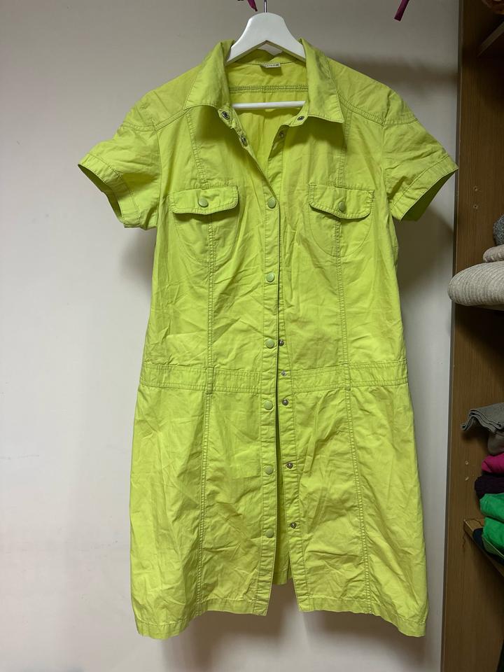 Классное платье-рубашка в ярком лаймовом оттенке — прям заряд настроения 🍋💚 Бомбовый вариант на лето — свежо, дерзко и очень заметно! Подойдет на размер M-L 🌺Есть небольшое нюанс - попала белизна, остался след (на последнем фото). Но совершенно не бросается в глаза Артикул: 586158