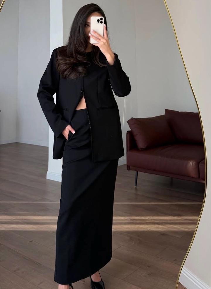 Премиальная костюмная двойка (юбка и пиджак) на подкладе. Юбка прямая со скрытой молнией, пиджак с необычной конструкцией застегивается на скрытые внутренние крючки. Состояние новое: носился один раз. Бирки сняты, но сохранены, имеются все чеки Артикул: 586168