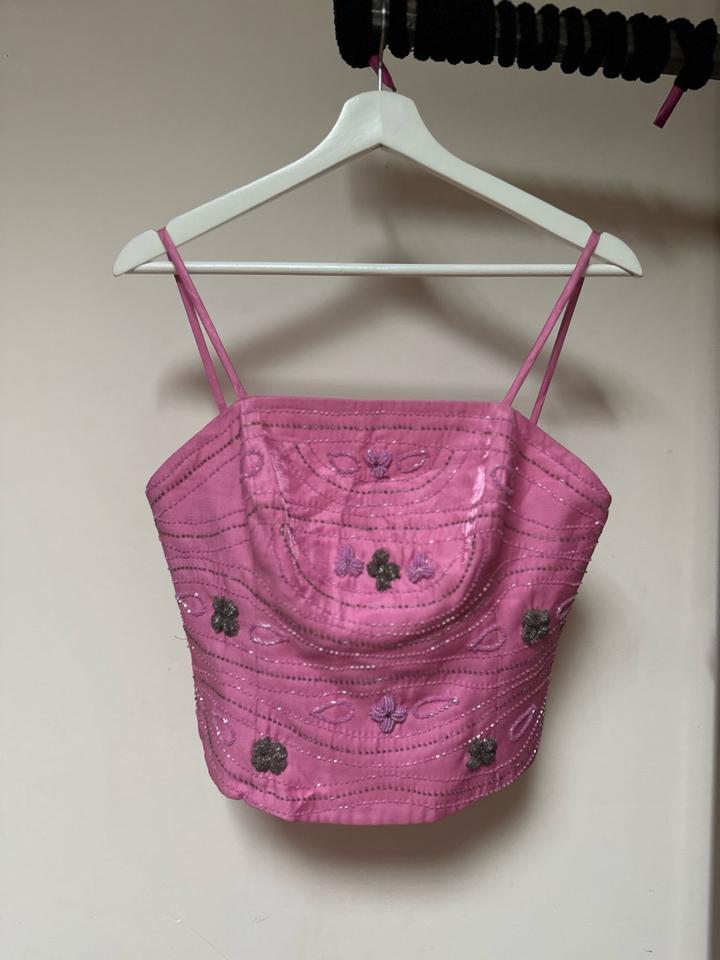 розовый топ расшитый бисером — чистый глам с ноткой Y2K 💖 Переливается, играет на свету и делает образ максимально эффектным. Тонкие бретели и корсетный крой красиво подчёркивают фигуру — идеален для вечеринок и вау-выходов ✨ Артикул: 586175