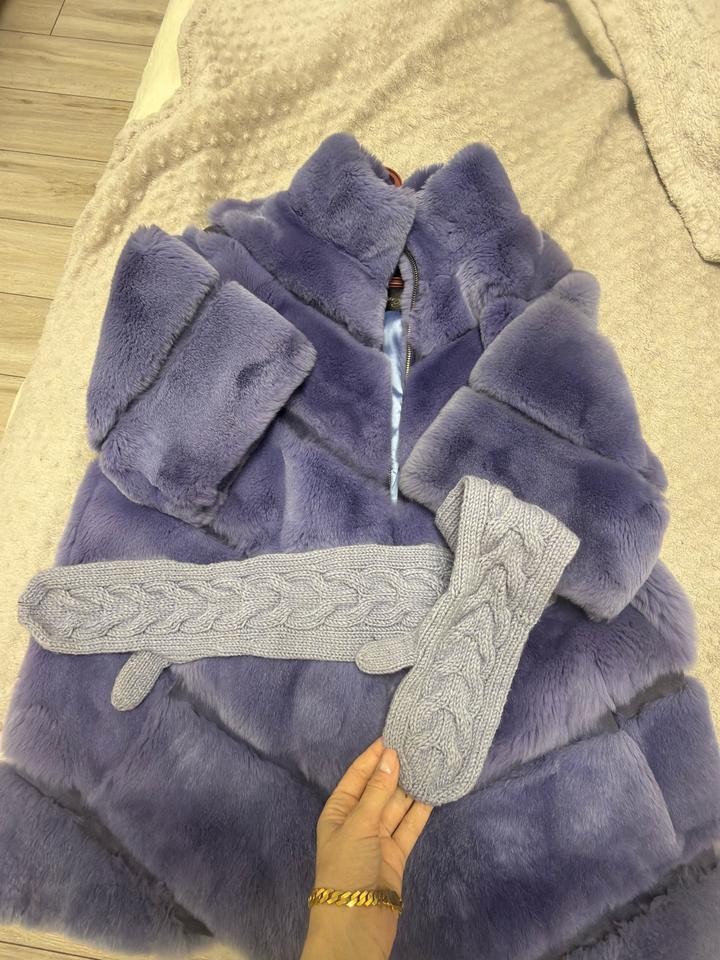 Шубка натуральная прикрывает попу короткие рукова ниже логтя перчатки вязала на заказ Артикул: 586179