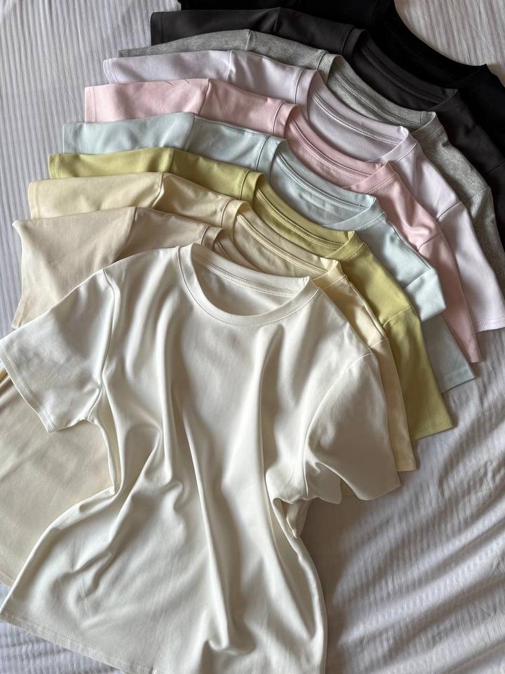 Новые с этикеткой Базовые футболки под Uniqlo. Материал 99% хлопок. Отличное качество. Размер стандарт от ХS до XXL. Есть цвета: черный, белый, розовый, голубой, лимонный, оливковый, графит Артикул: 586187