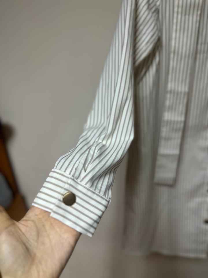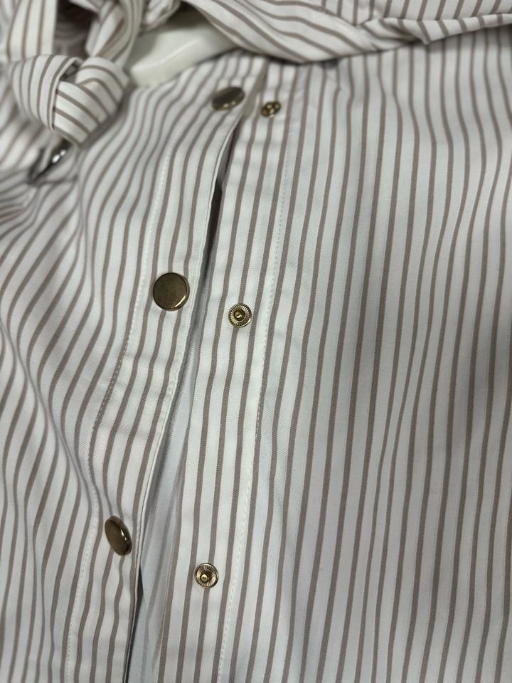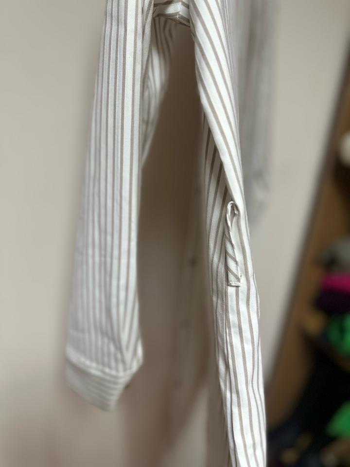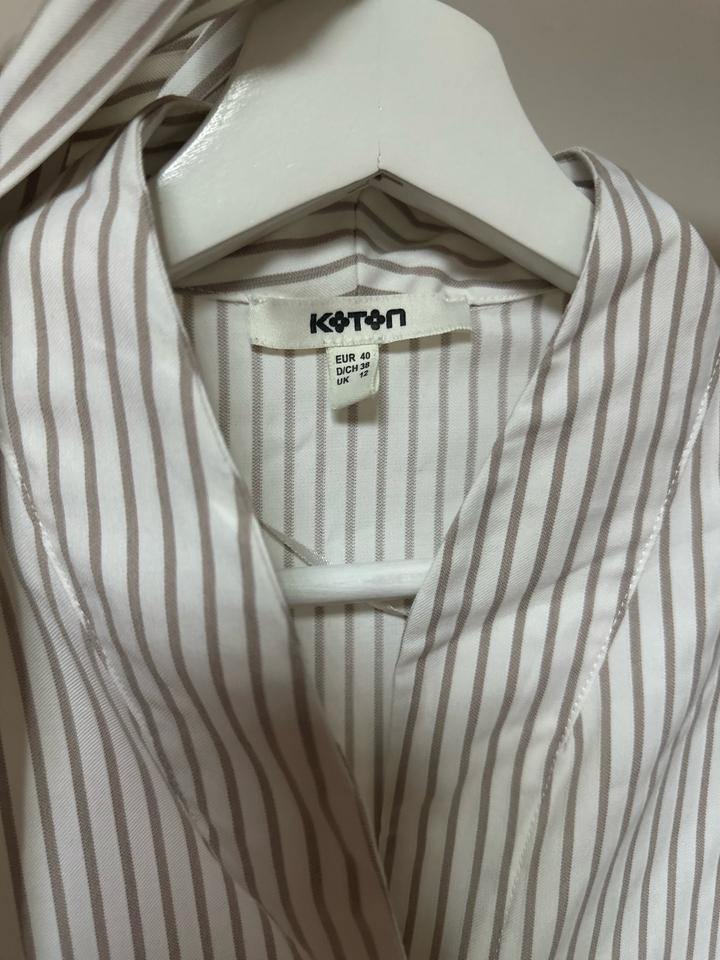 Платье-рубашка Koton в молочно-белом оттенке с тонкой полоской. Прямой крой, акцентные пуговицы и пояс создают аккуратный, собранный силуэт — универсальный вариант на каждый день и в офис. Поясок в комплекте Артикул: 586215