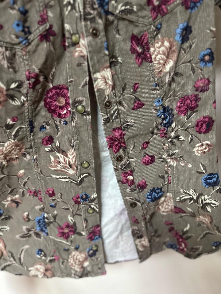 Вельветовая рубашка в цветочный принт Massimo Dutti. Плотный хлопок, аккуратный крой и винтажный флоральный узор — выглядит дороже за счёт ткани и деталей, легко впишется в casual и smart-casual образы. 🩷Маркировка 36. На очень миниатюрную девушку или на подростка Артикул: 586255