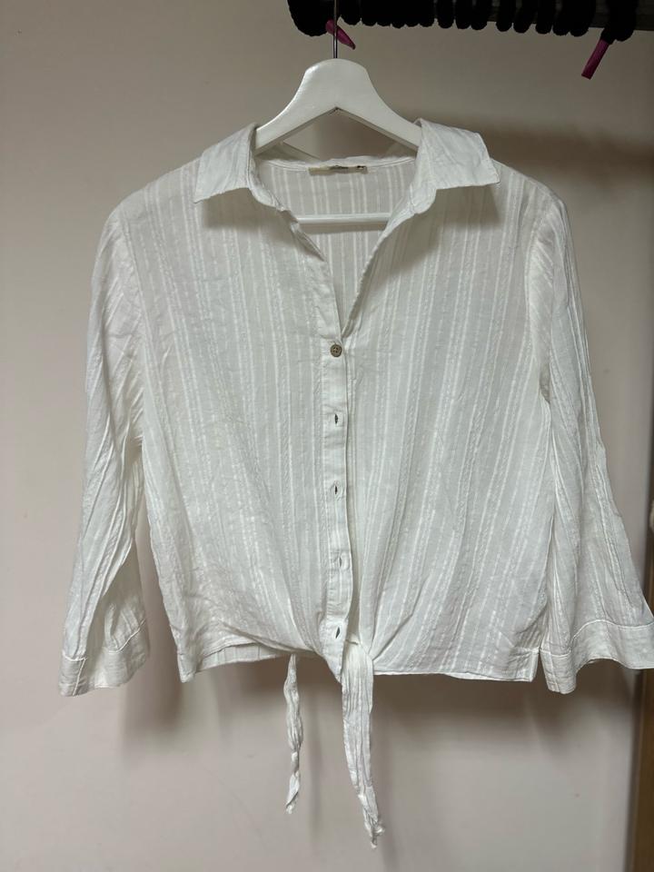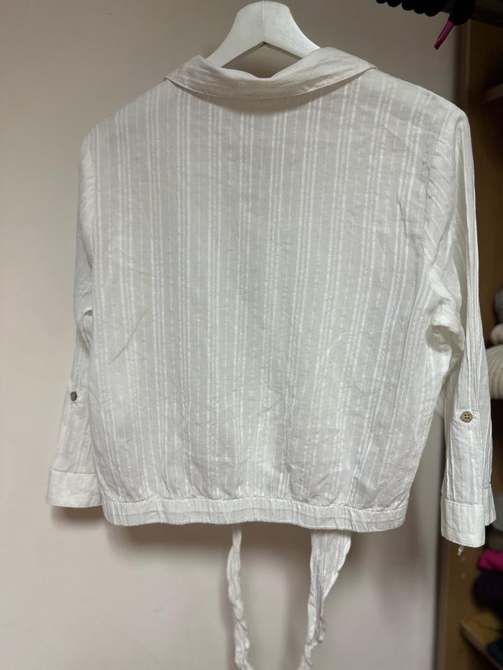 Белая укороченная рубашка с завязками 🤍 Та самая база, которая делает образ свежим и дорогим. Лёгкая фактурная ткань + аккуратная посадка — идеально на лето. ▪️ Ткань: лёгкая, дышащая Можно носить с джинсами, юбками, шортами или накинуть поверх топа — универсальная вещь на каждый день ☀️ Артикул: 586279