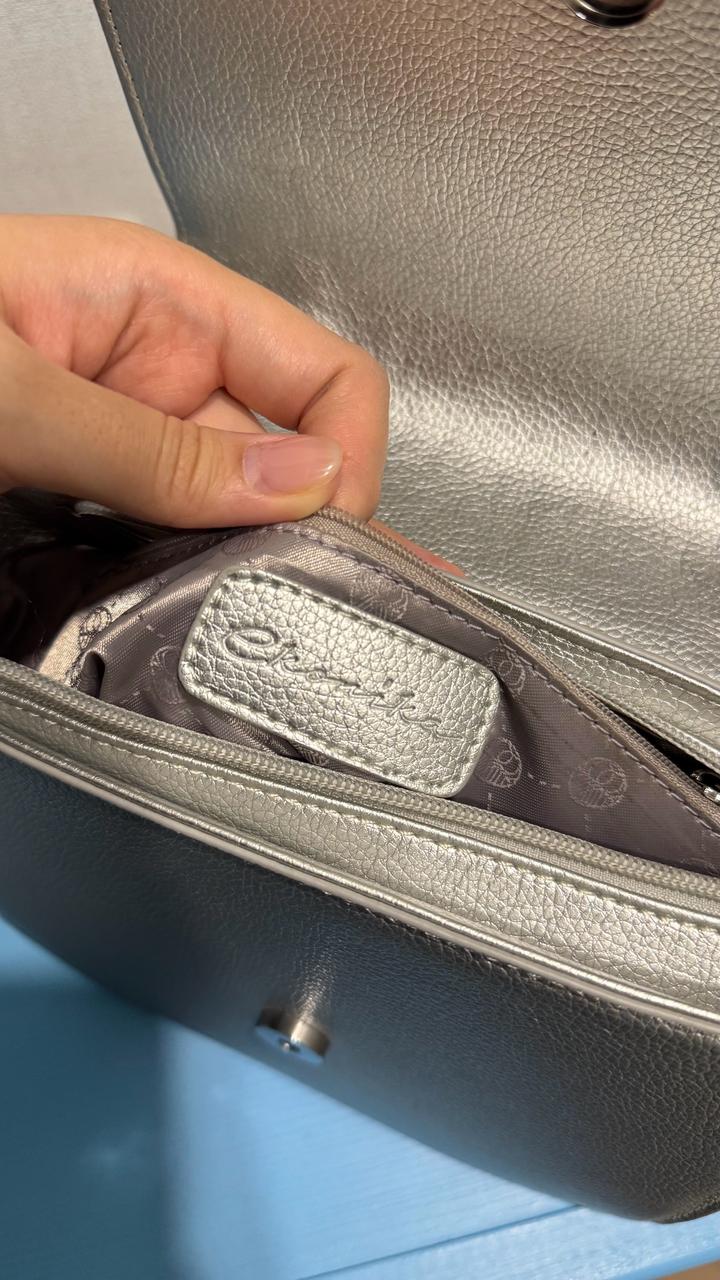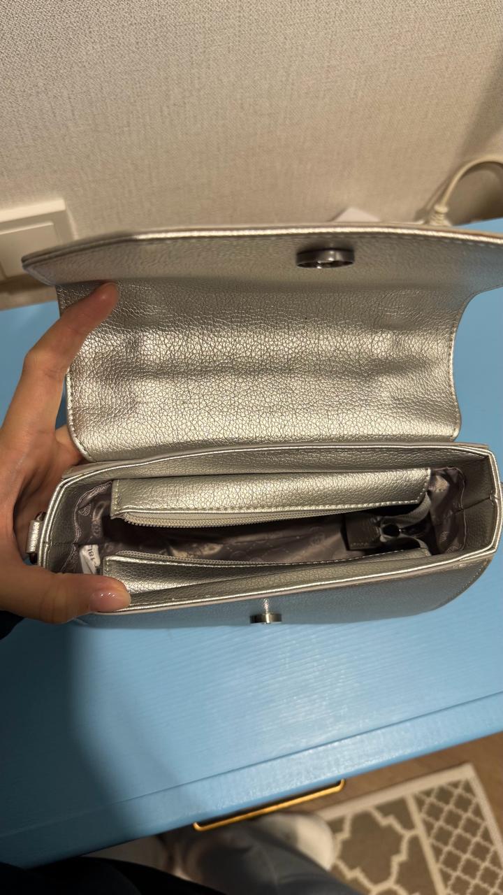 Новая серебряная сумка Ekonika из коллекции Аллы Пугачевой. Бирка снята, но сумка не носилась. Легкая, вместительная и очень удобная, внутри одно глубокое отделение и внутренний карман. Покупалась в ГУМе в Москве. Артикул: 586284