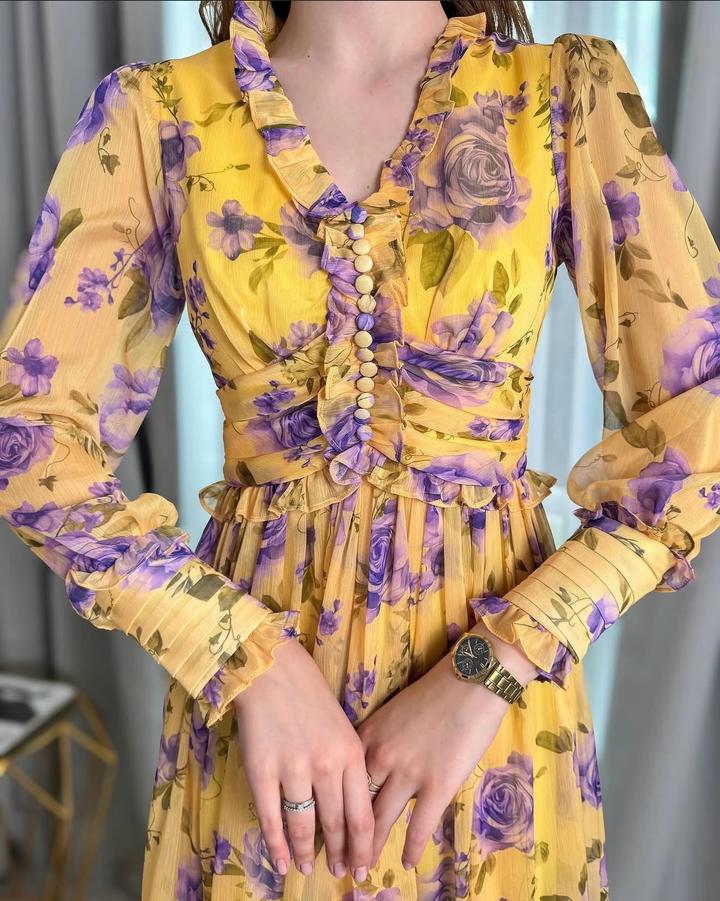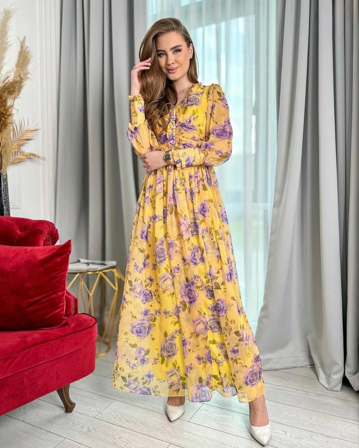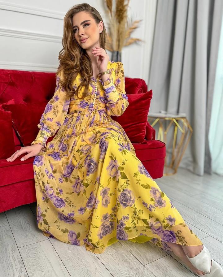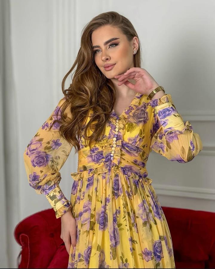 Шифоновое платье - прекрасный выбор для особых случаев или на каждый день Легкая струящаяся ткань, имеющая цветочный принт, красиво драпируется создавая волны и линии привлекая всеобщее внимание🥰 Размер С/42 Производства Турция 🇹🇷 Фирма Qlaure Артикул: 586346