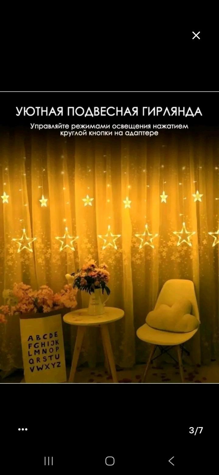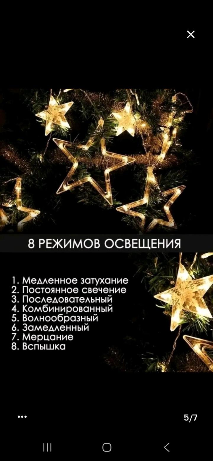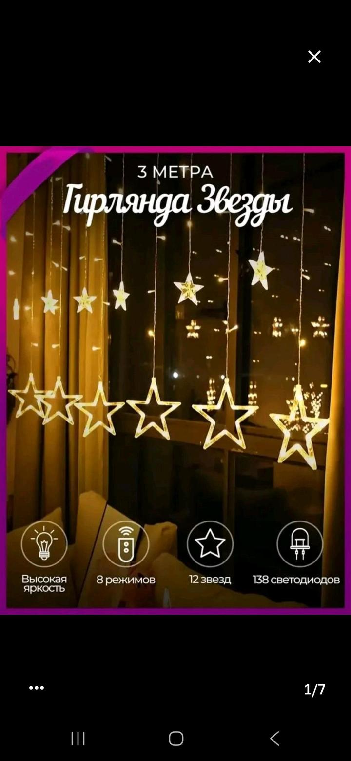2 гирлянды по цене одной. Выполнены в виде звезд и колоколов 3 метра×1 метр в высоту. Идеальное освещение, создают уют и волшебность. Продаю в связи с переездом. Работают на ура 🙌 Артикул: 586352