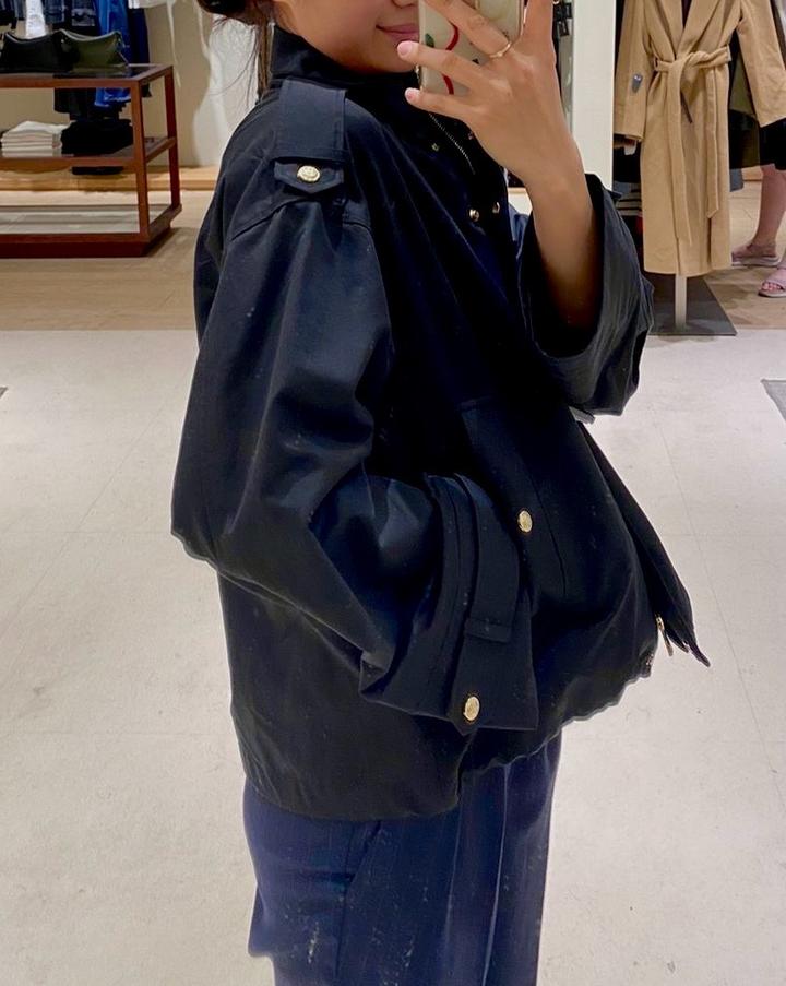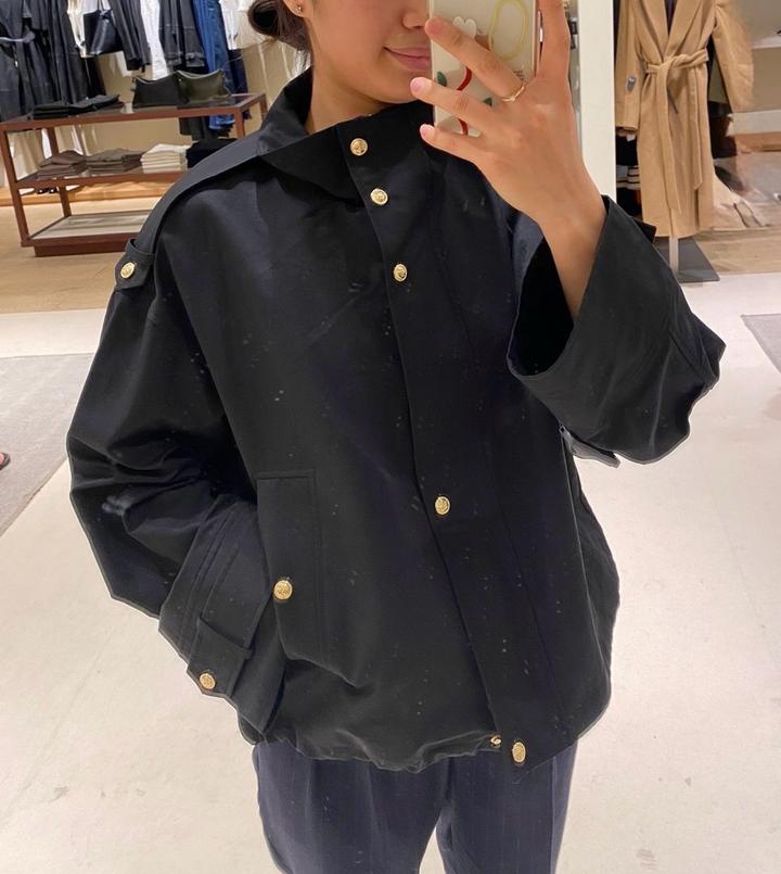Легкая хлопковая куртка Massimo Dutti в стиле old money/quiet luxurу Цвет: черный Материал: плотный хлопок (идеально на весну/осень) Крой: свободный oversize Детали: – стойка воротник – золотистые кнопки и молния – декоративные погоны – объемные рукава Артикул: 586361