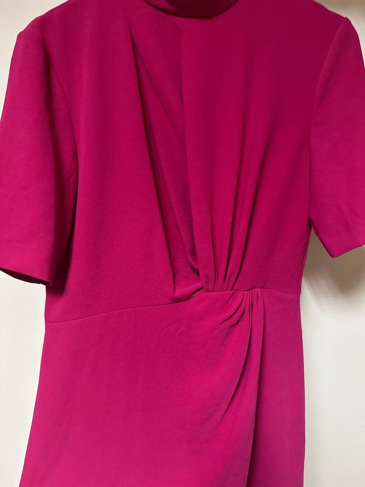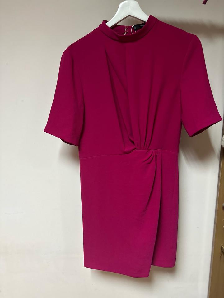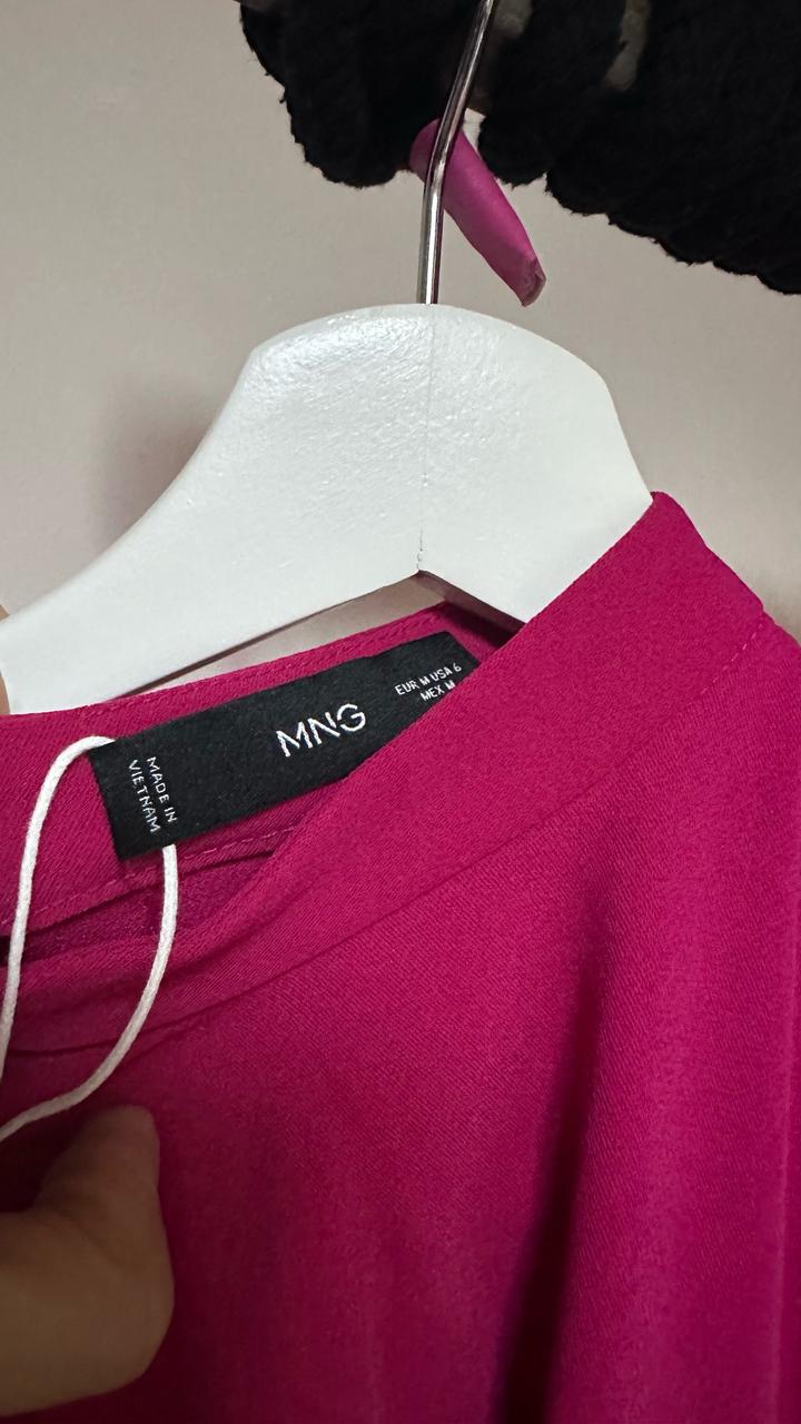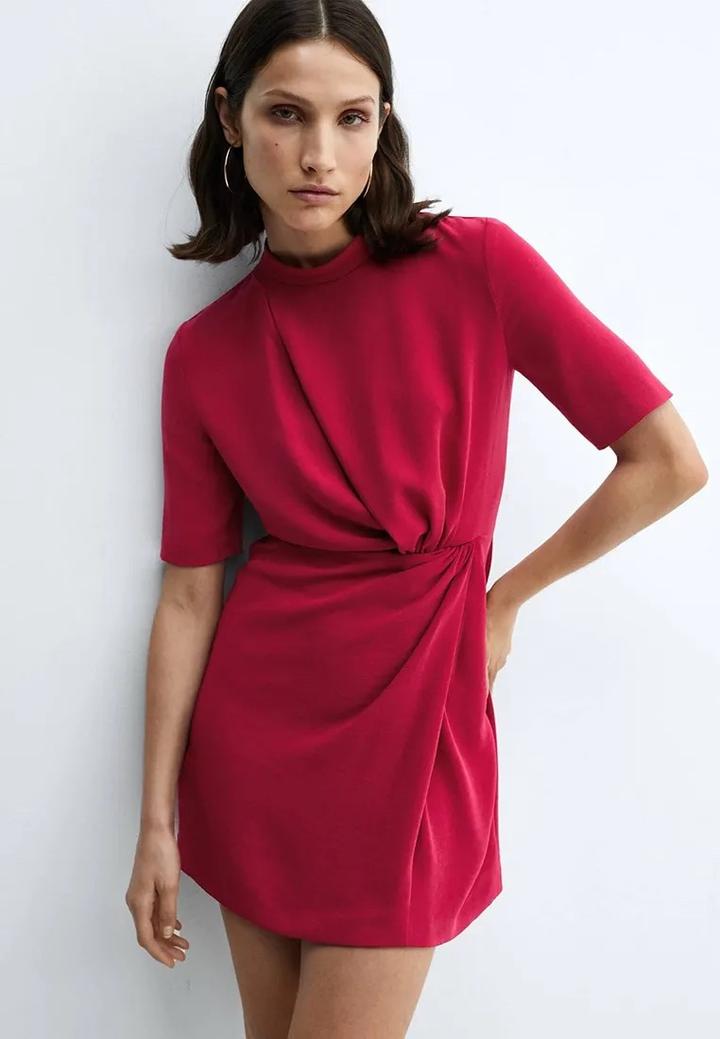 Яркое платье Mango в сочном оттенке фуксии 💖 Эффектная модель с драпировкой на талии, которая красиво подчёркивает силуэт и скрывает нюансы. Лаконичный верх с коротким рукавом и аккуратной горловиной делает образ элегантным, а цвет — настоящим акцентом. Идеально для мероприятий, свиданий и выходов. Артикул: 586385