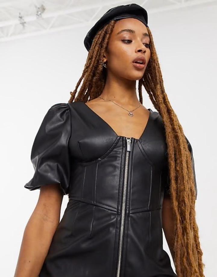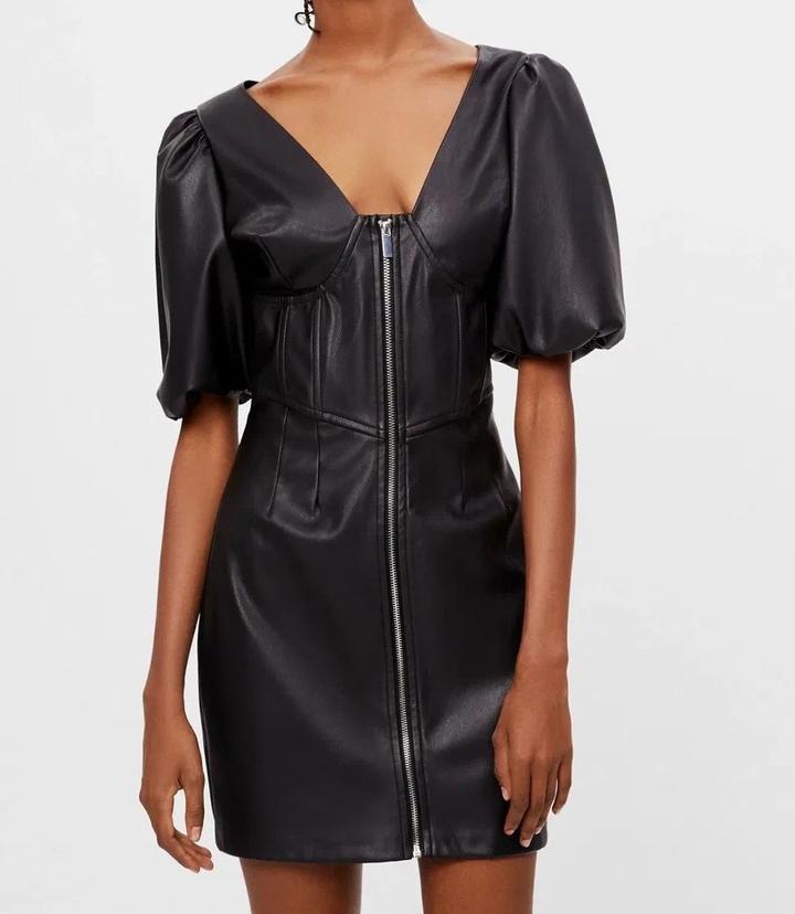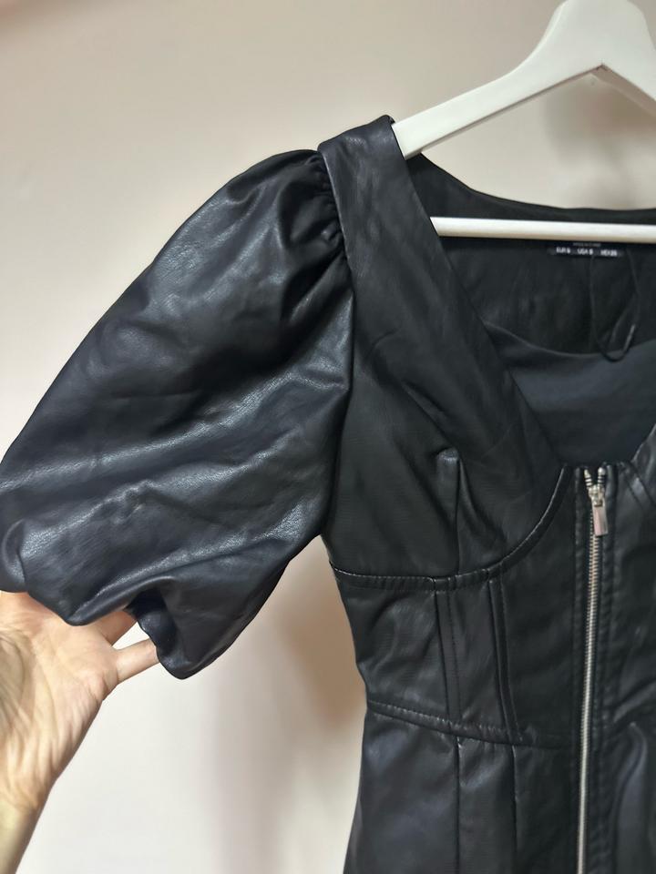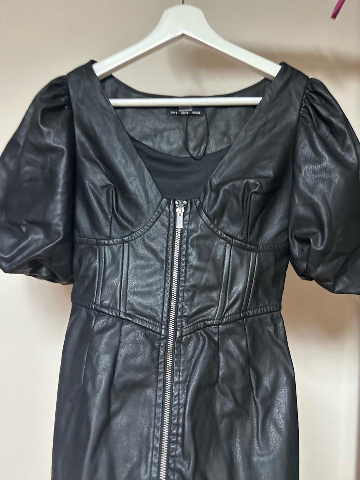 Платье Bershka из экокожи в чёрном цвете 🖤 Эффектная модель с акцентными объёмными рукавами и корсетным кроем, который красиво подчёркивает талию. Глубокий вырез и молния спереди добавляют дерзости и делают образ максимально выразительным. Отличный вариант для вечерних выходов. Артикул: 586386